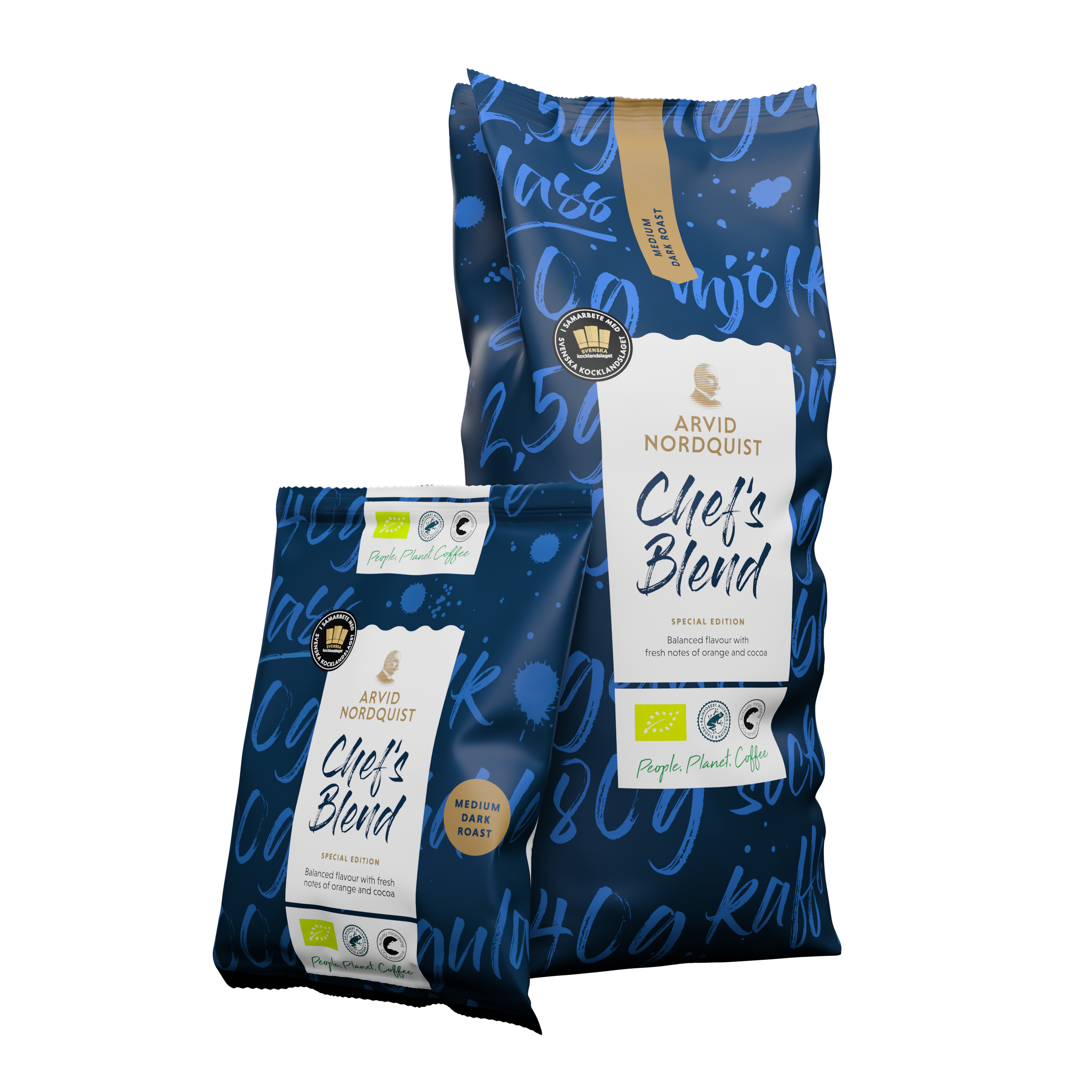 Chef’s Blend – ett exklusivt, hållbart och smakrikt kaffe framtaget av Arvid Nordquist och Svenska Kocklandslaget. En tydlig, frisk och aromatisk smakupplevelse med toner av apelsin och kakao.