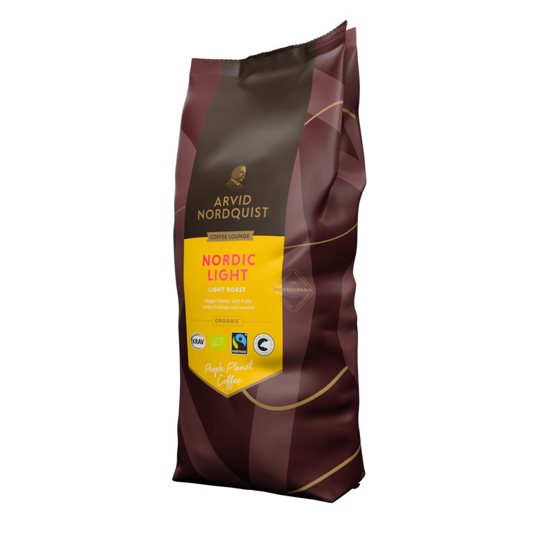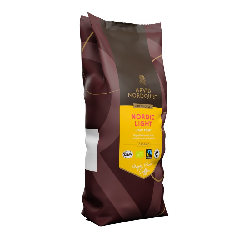 Nordic Light är ett ljusrostat kaffe från Arvid Nordquist med en elegant karaktär och fruktiga toner av apelsin. Eftersmaken har en behaglig sötma av kola som ger en balanserad och rund smakupplevelse. Det ljusrostade kaffet kräver extra hög kvalitet på bönorna som rostas varsamt för att framhäva friska och nyanserade aromer jämfört med mellan- och mörkrostat kaffe.