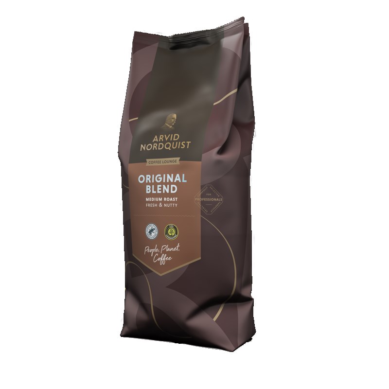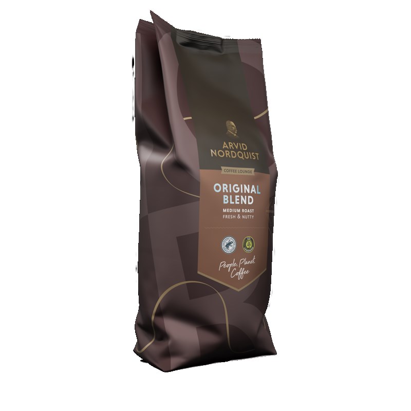 Arvid Nordquist Original Blend är ett klassiskt mellanmörkrostat kaffe med elegant och frisk karaktär. Smaken är rund och nötig med en generöst lång, frisk eftersmak. Bönorna är 100% Arabicabönor, odlade på hög höjd där de får mogna långsamt för optimal smakutveckling. Frukten plockas normalt för hand och bearbetas varsamt för att bevara bönornas naturliga arom och kvalitet. Ett balanserat och friskt kaffe som passar perfekt för såväl morgonkoppen som eftermiddagens fika.
