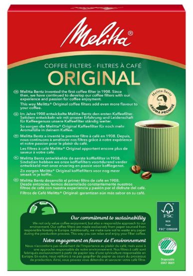 Upptäck en balanserad och ännu mer aromatisk smakupplevelse med ditt filterkaffe genom Melitta® Original aromkaffefilter. De unika Aromporerna är nu indelade i tre aromzoner med olika antal porer, vilket optimerar genomströmningen och framhäver kaffets fulla arom. Filtren håller högsta kvalitet vad gäller renhet, slitstyrka och filtreringskapacitet, och den extra starka dubbel fogen ger stabilitet även vid intensiv användning.