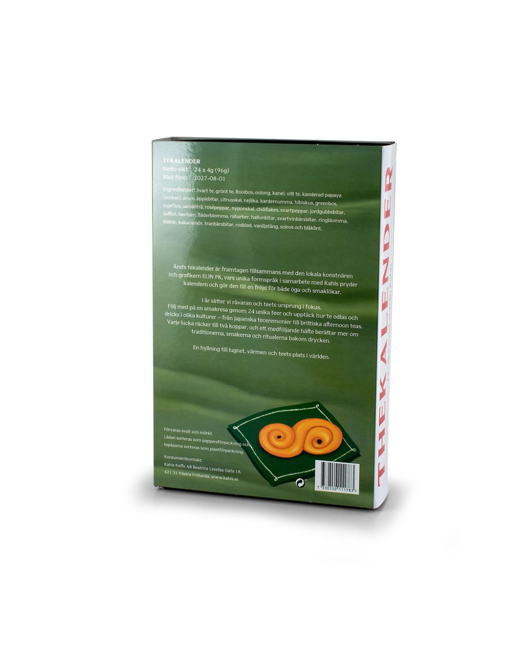 Bakom varje lucka döljer sig ett nytt te – 24 unika sorters te som bjuder in till lugn, nyfikenhet och njutning. Låt dig inspireras av hur te dricks världen över från brittisk eftermiddagstradition till japanska teceremonier och svenska fikastunder. Ett vackert informationshäfte guidar dig genom resan med fakta, tips och inspiration och varje lucka räcker till två koppar te att dela eller spara. Gör december till en stund av värme, vila och världsomspännande smakglädje – en kopp i taget.