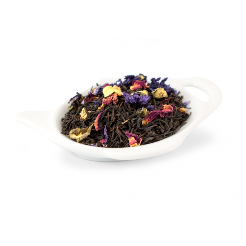| Ingredienser | Svart te, rosblad, blåklint, jordgubbsarom, persikoarom, ananasarom, svartvinbärsarom. |