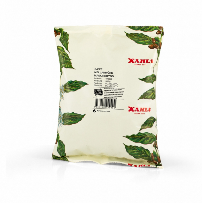 Kahls Malt Mellanmörk Maskinbrygg RFA SG är vårt klassiska mellanmörka kaffe. Det innehåller noggrant utvalda bönor från Östafrika, Brasilien och tvättat kaffe från Latinamerika. Resultatet är ett smakrikt och fylligt kaffe med en behaglig syrlighet och lång, god eftersmak.