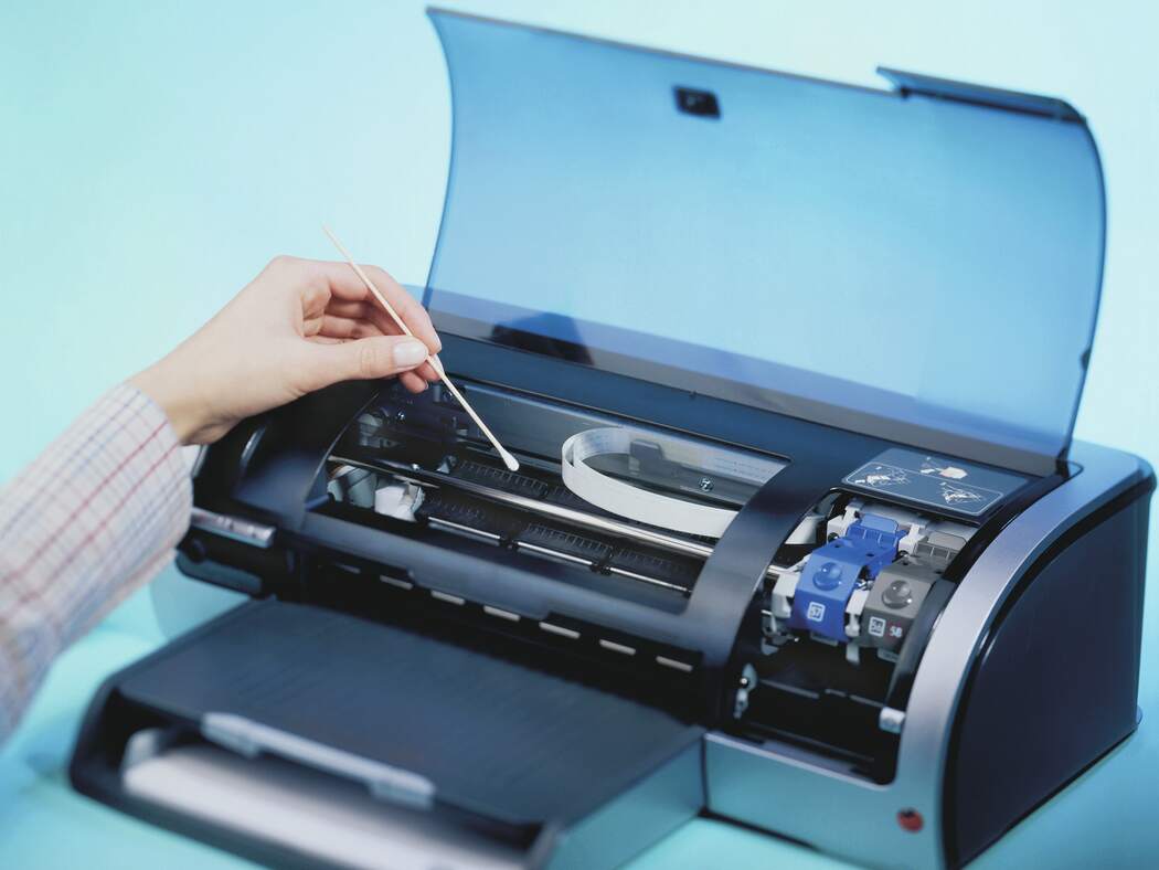 15 cm långa pinnar av bokträ med bomullstopp för rengöring av svåråtkomliga ytor på kontorsmaskiner, tangentbord och skrivare.