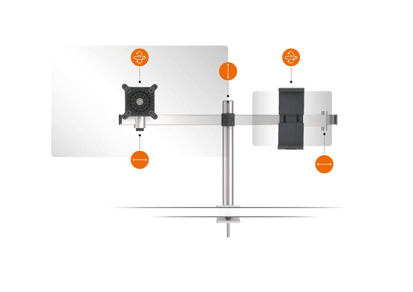 Skärmhållare Pro för 1 Skärm och 1 Surfplatta, Bordsfäste