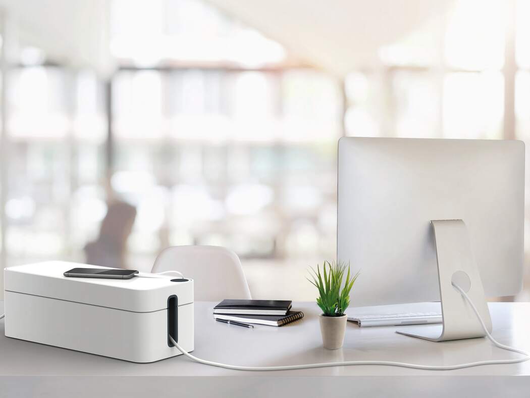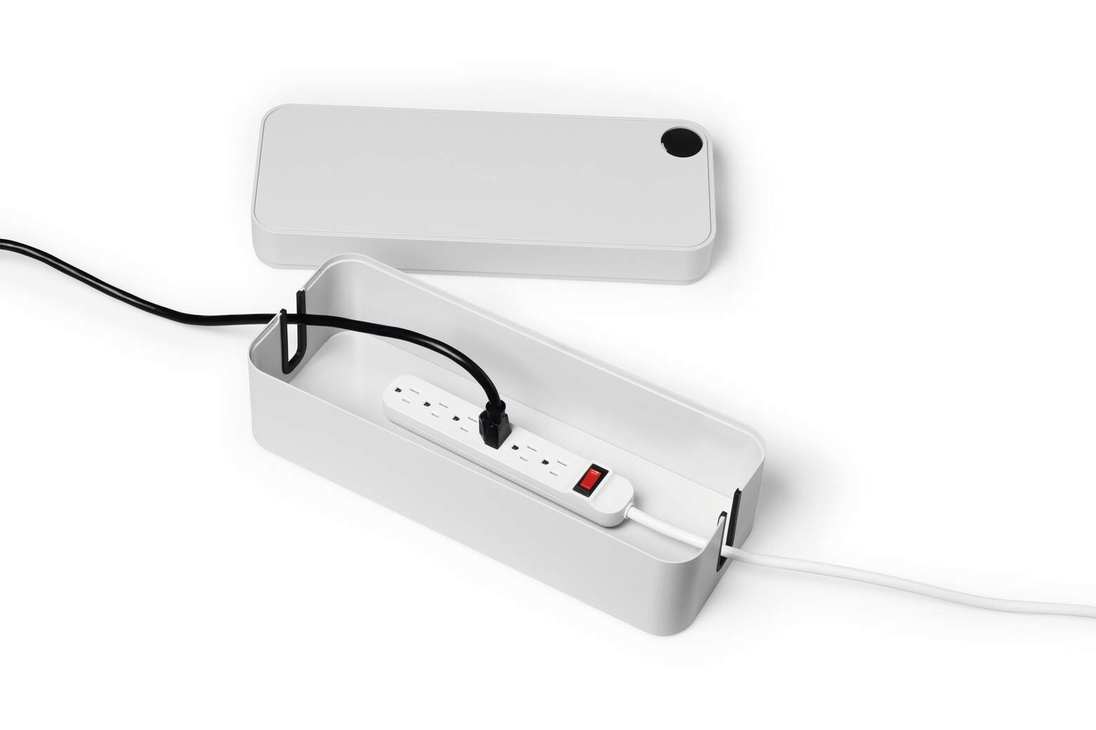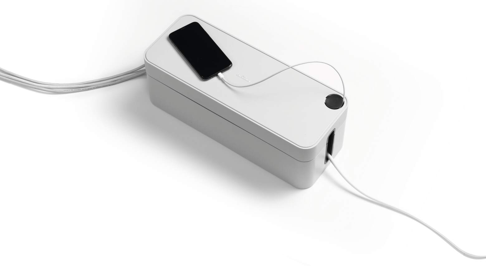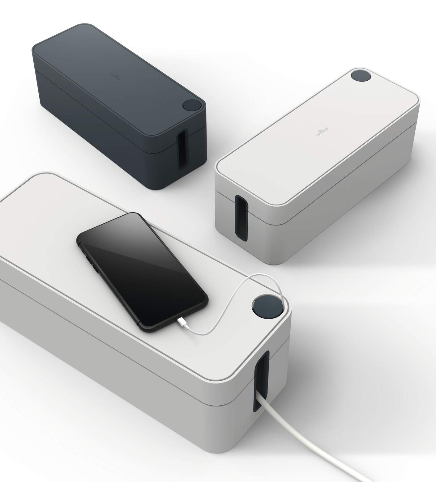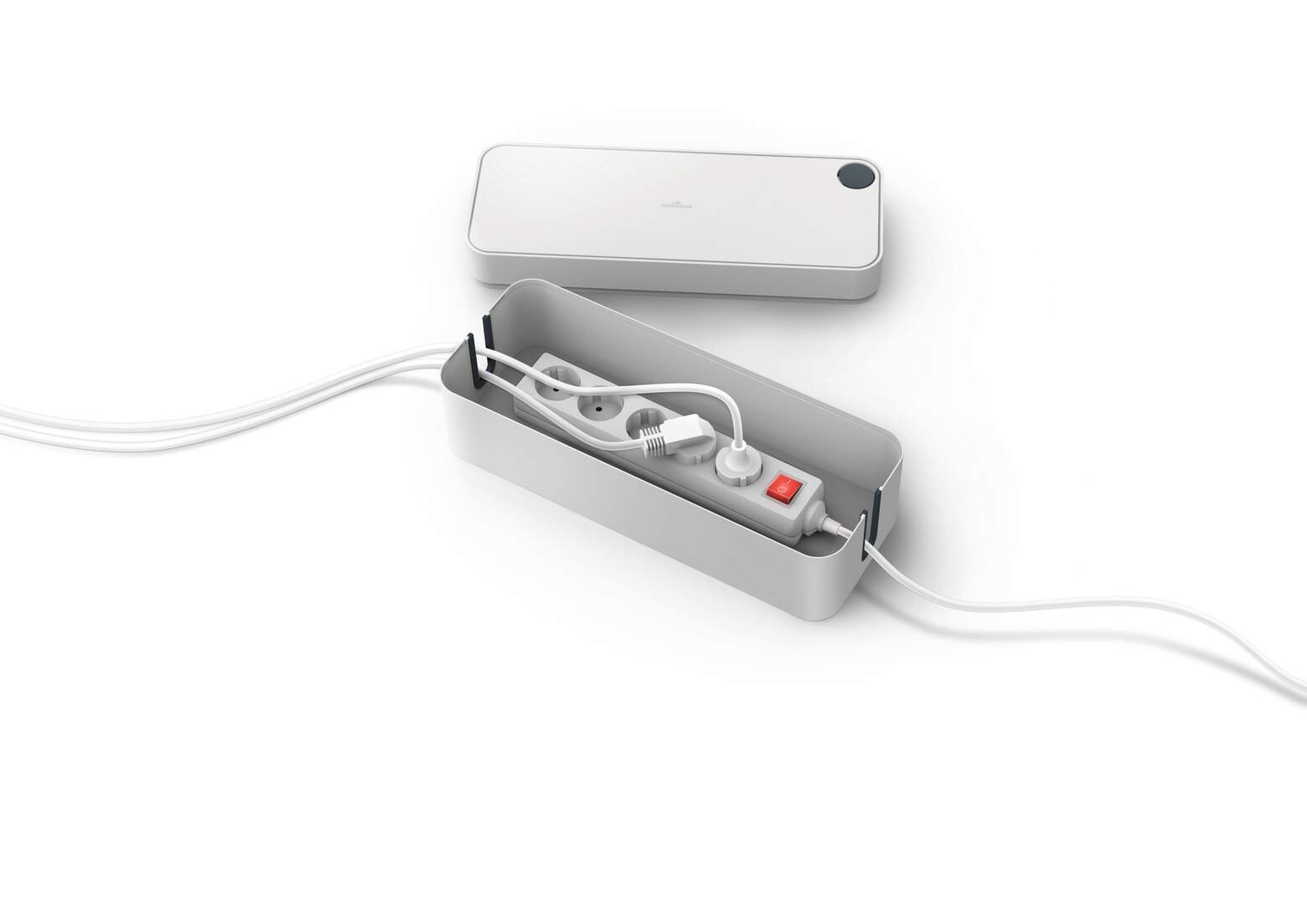 Håll ordning på kablarna med CAVOLINE® både på kontor och i hemmiljö. Samla ihop kablarna så ser det prydligare ut och blir dessutom mer lättstädat. _x000D_Elegant sladdbox av flamsäker plast för kablar och 5-vägs grenuttag_x000D_. Gummiklädda öppningar för kablar på båda kortsidorna. Öppningarna fungerar även som ventilationshål. Lock med praktisk kabelgenomföring för mobilens laddningskabel. Stora gummifötter gör att kabelgömman står stadigt_x000D_. Mått: 406 x 156 x 139 mm (B x H x D)_x000D__x000D_
