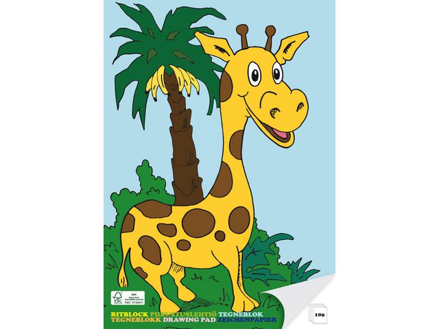 Fint ritblock med motiv av en giraff på framsidan.