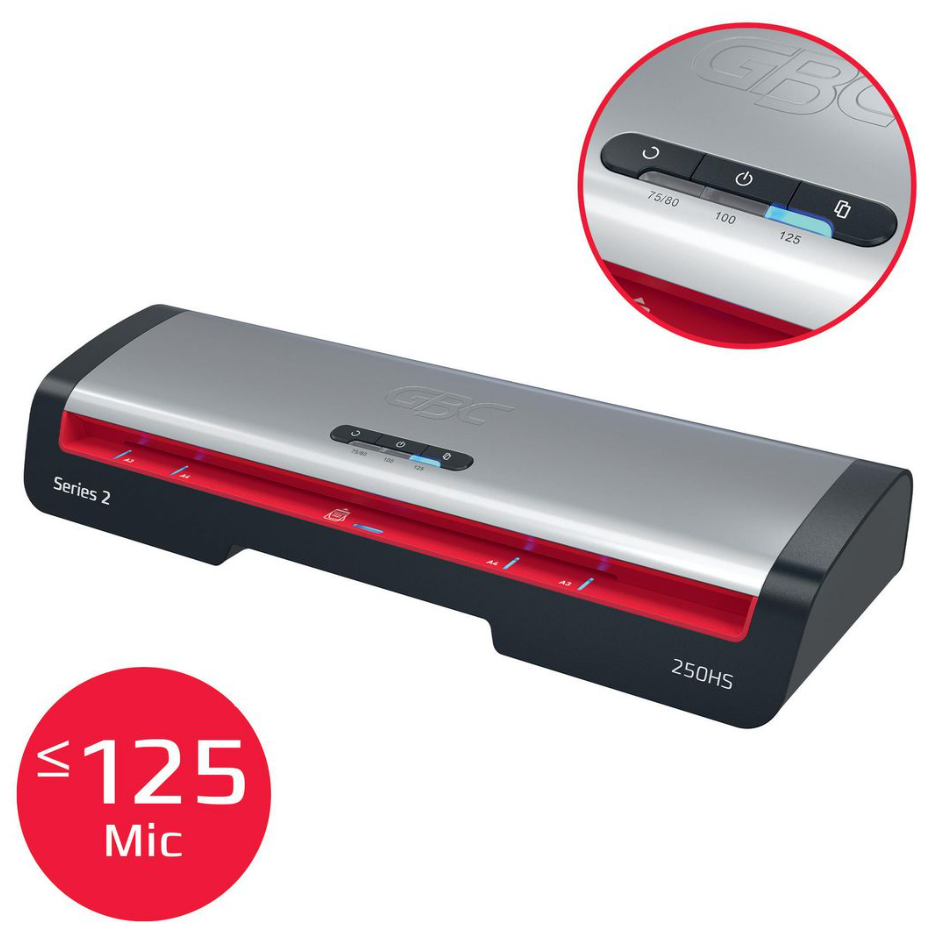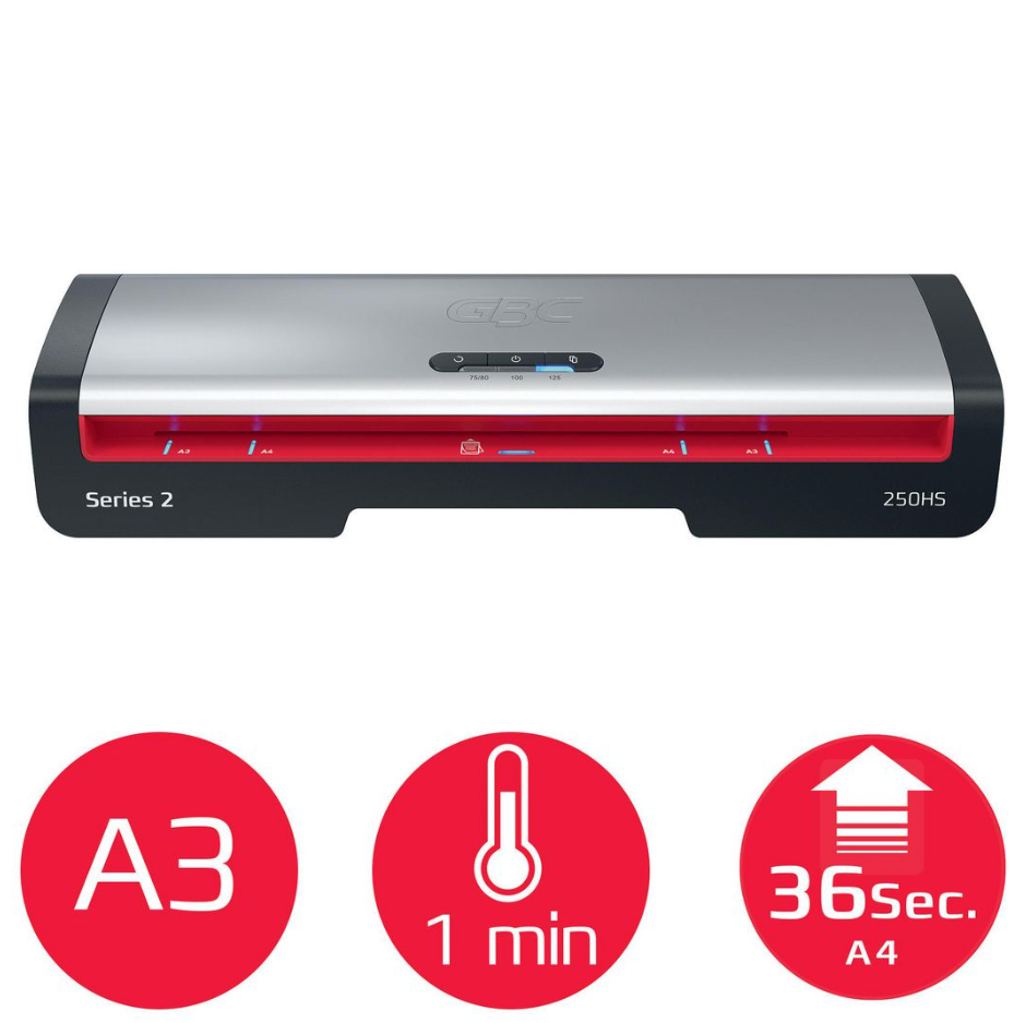 GBC 250HS A3 lamineringsmaskin är en pålitlig och effektiv lösning för dagliga lamineringsbehov på kontor. Den kombinerar hög hastighet med användarvänlig design och levererar professionella resultat snabbt och smidigt. Perfekt för kontorsmiljöer där effektivitet och kvalitet är viktiga.