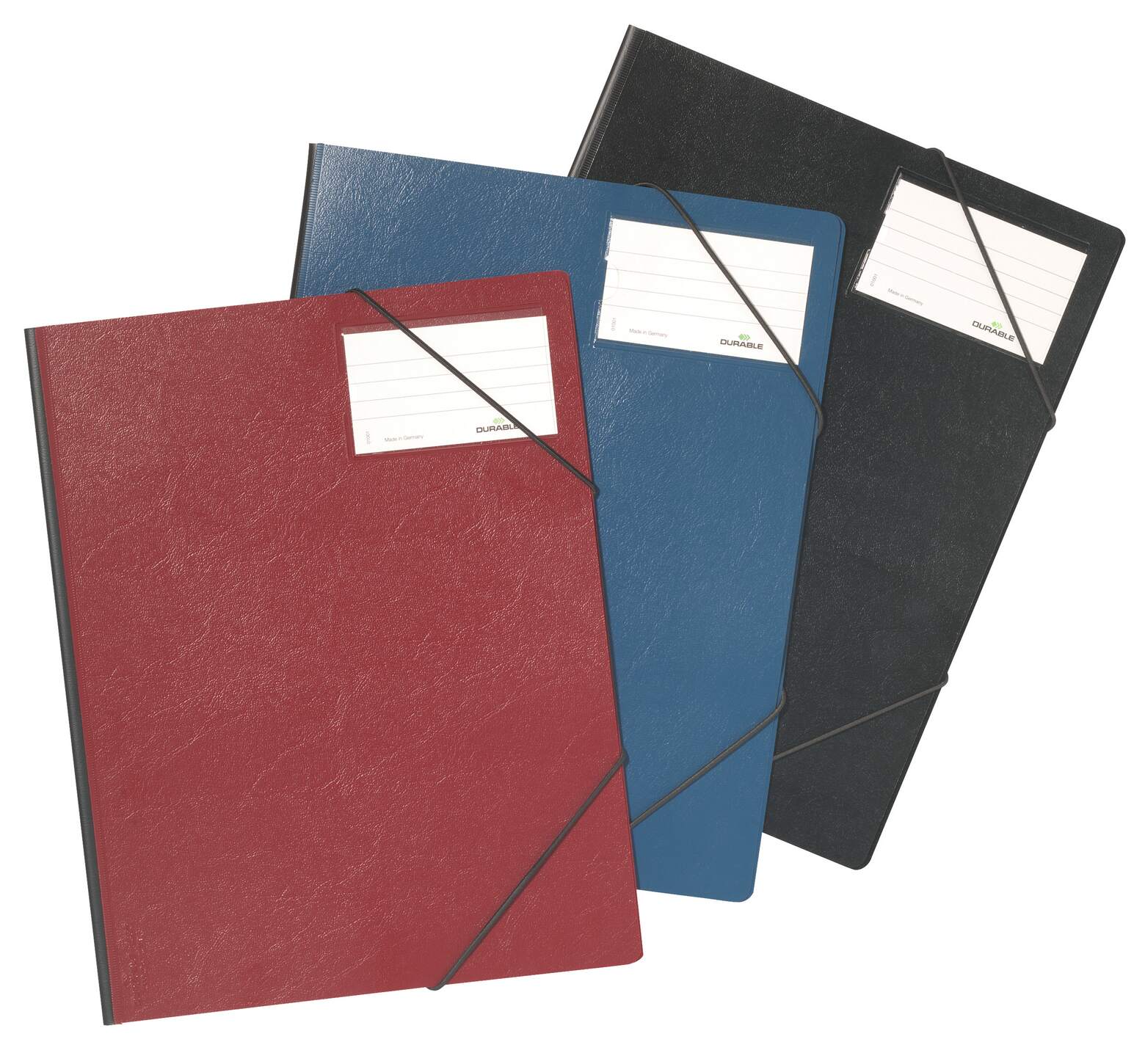 Varumärke Durable Typ Offertmappar Kategori Arkivvaror Material PVC Färg Svart, Röd, Blå Format A4 Storlek 24 x 31 cm Kapacitet 150 ark Bredd 240 mm Längd 310 mm -