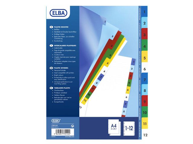 Varumärke Elba EAN 3045050156632 Typ Plastregister Material PP Färg Blandad Format A4 Storlek 23 x 33 cm -