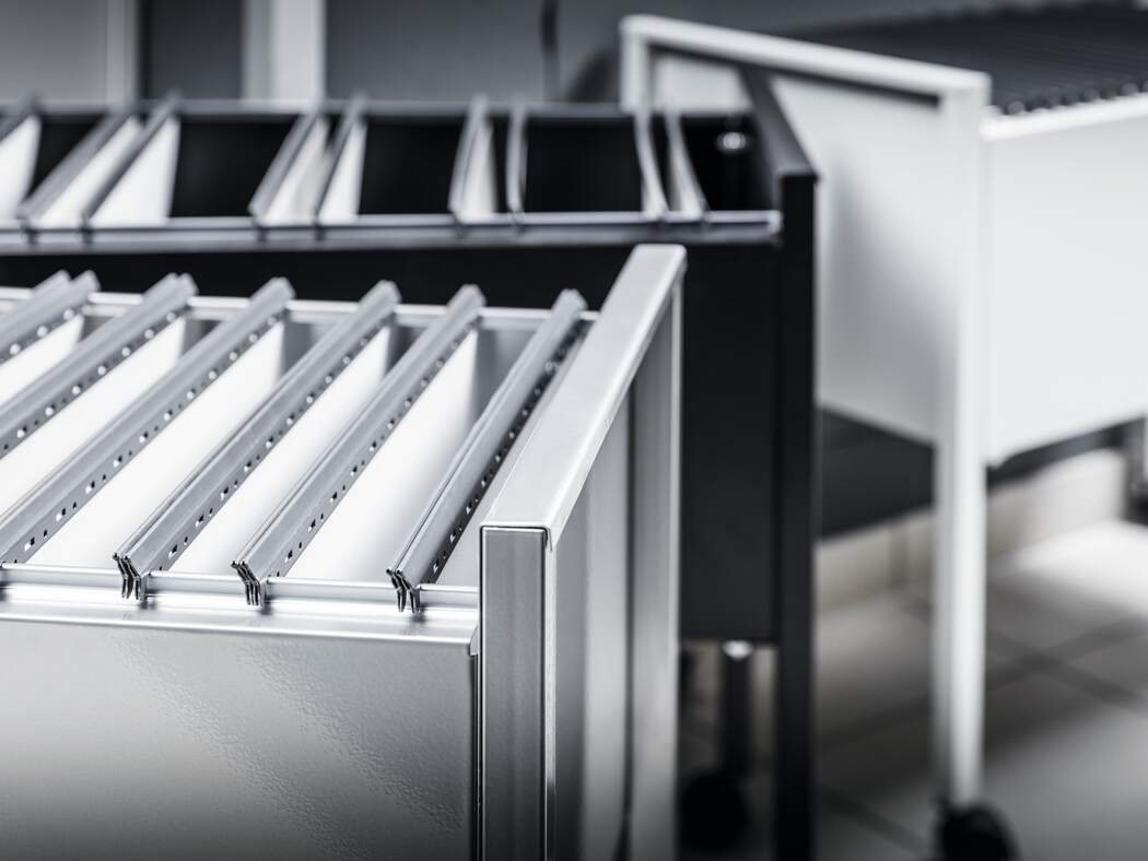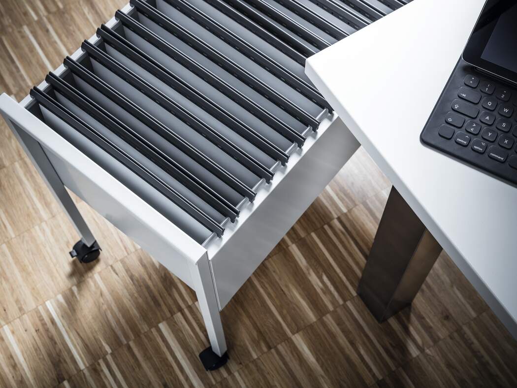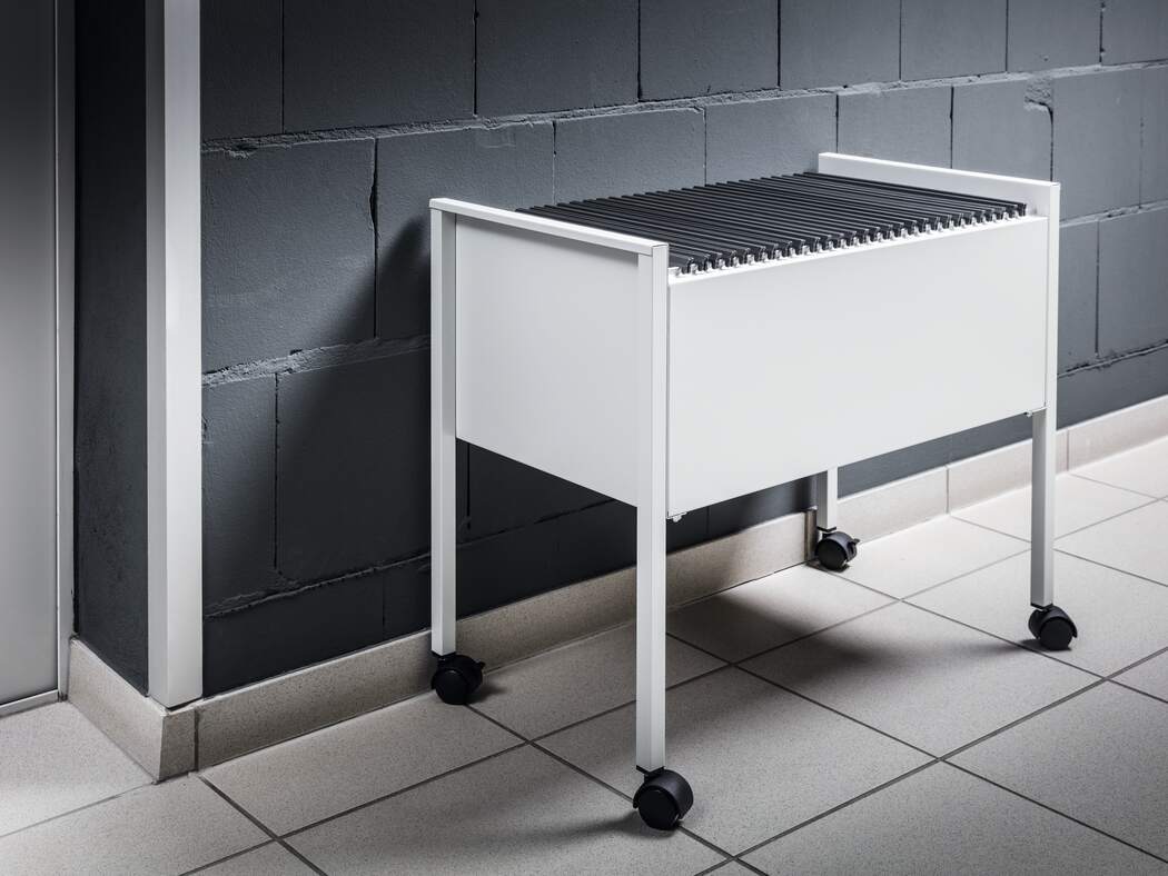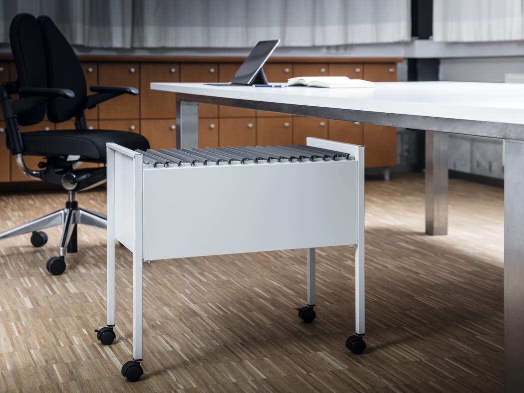 Hängmappsvagn på hjul som rymmer ca 80 st hängmappar i A4-format.