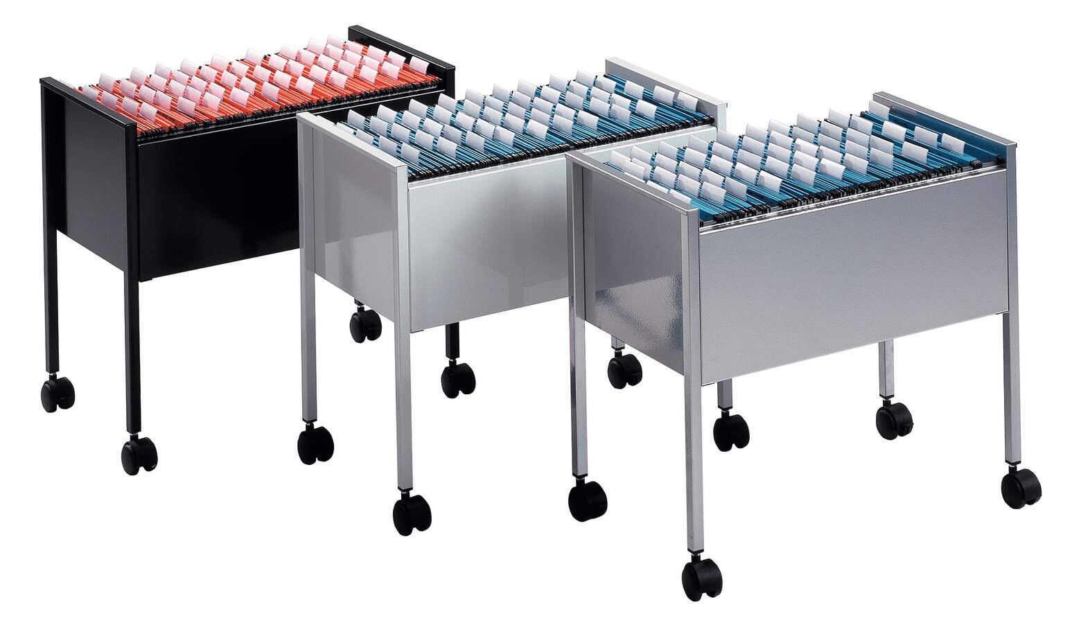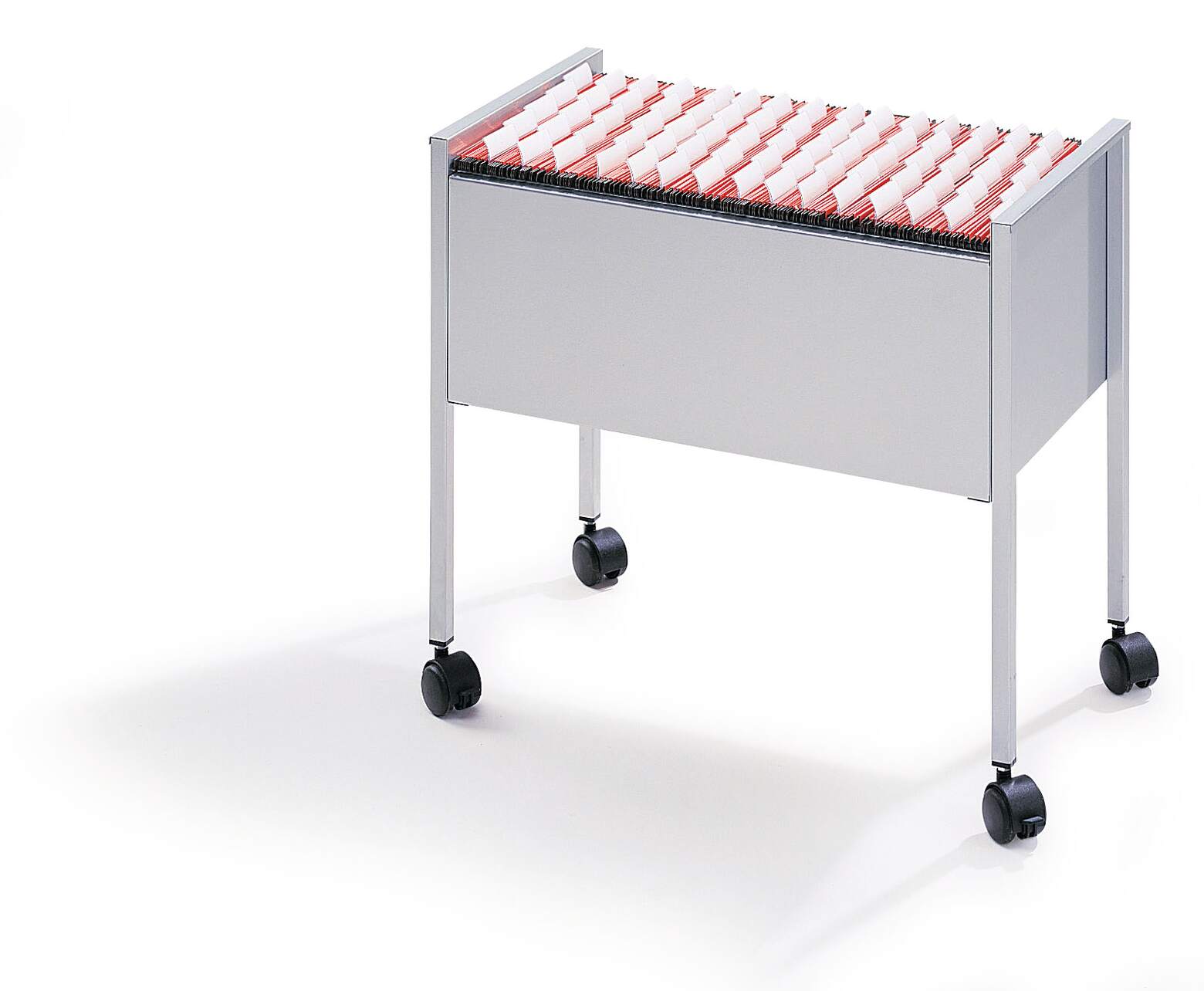Arkivera och organisera dokument i hängmappar som förvaras i hängmappsvagnar med hjul. Metallvagn med reptålig polyesterbeläggning som rymmer ca 80 st hängmappar i A4-format. Vagnen är utrustad med 4 st svängbara länkhjul, varav 2 st har broms. Lätt att förflytta och stabil när den är "parkerad". Levereras i platt paket med monteringsanvisning. Mått: 592 x 655 x 368 mm (HxBxD)Visa mer beskrivningVisa mindre beskrivning -