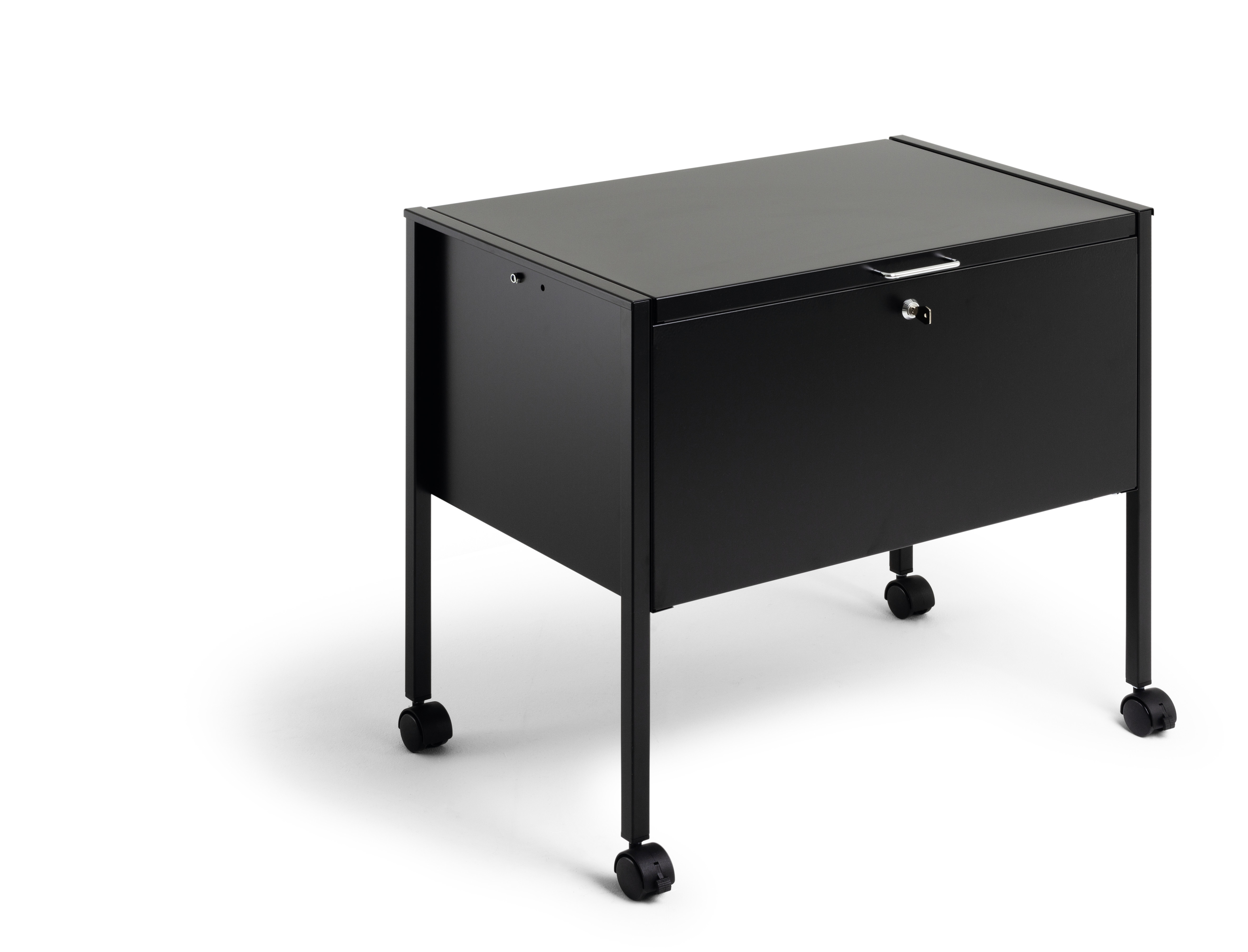 Arkivera och organisera dokument i hängmappar som förvaras i hängmappsvagnar med hjul. Låsbar metallvagn med reptålig polyesterbeläggning som rymmer ca 80 st hängmappar i A4-format. Vagnen är utrustad med 4 st svängbara länkhjul, varav 2 st har broms. Lätt att förflytta och stabil när den är "parkerad". Två nycklar ingår. Levereras i platt paket med monteringsanvisning.Mått: 592 x 655 x 404 mm (HxBxD)