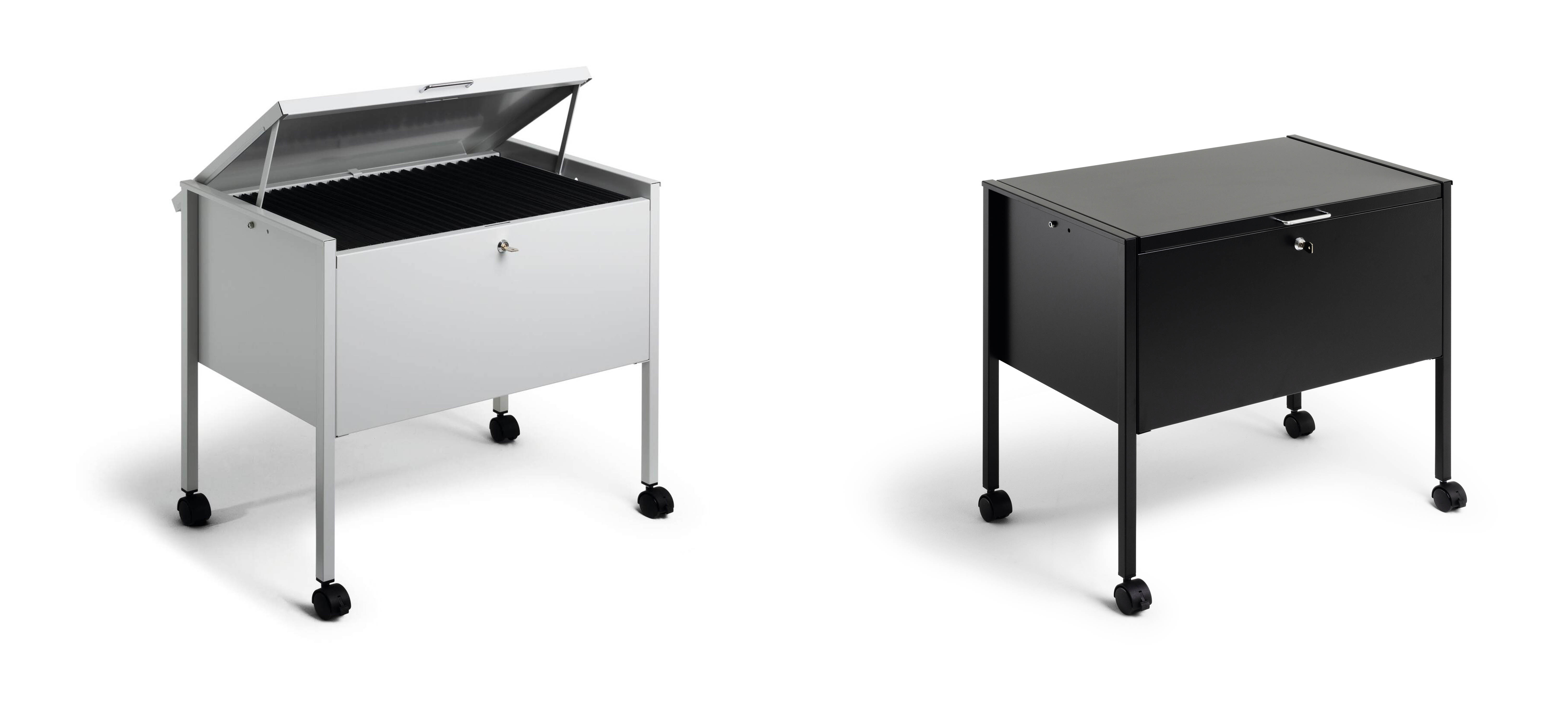 Arkivera och organisera dokument i hängmappar som förvaras i hängmappsvagnar med hjul. Låsbar metallvagn med reptålig polyesterbeläggning som rymmer ca 80 st hängmappar i A4-format. Vagnen är utrustad med 4 st svängbara länkhjul, varav 2 st har broms. Lätt att förflytta och stabil när den är "parkerad". Två nycklar ingår. Levereras i platt paket med monteringsanvisning.Mått: 592 x 655 x 404 mm (HxBxD)Visa mer beskrivningVisa mindre beskrivning -