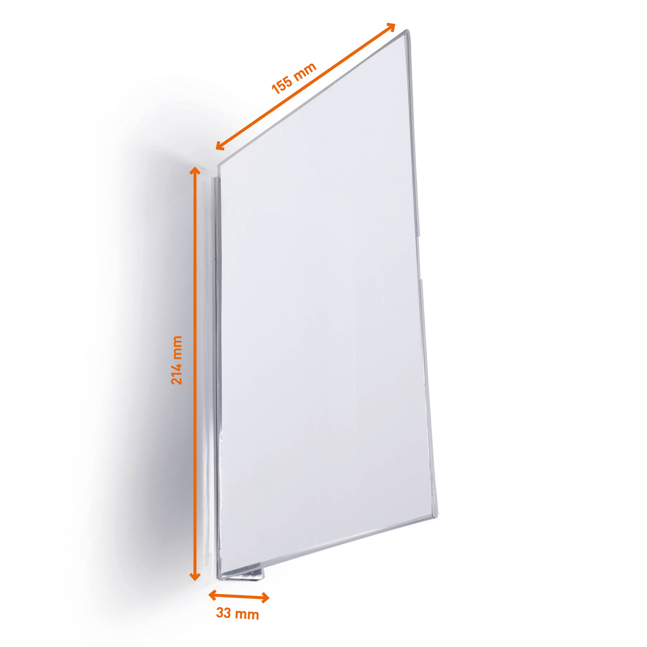 Varumärke Durable EAN 4005546742540 Typ Gångskyltar Kategori Kontorsmaterial Material Plast Bredd 15.5 cm Höjd 21.4 cm Djup 3.3 cm Format A5, Stående, 210 x 148.5 mm Antal st/fp 10 - Produktblad