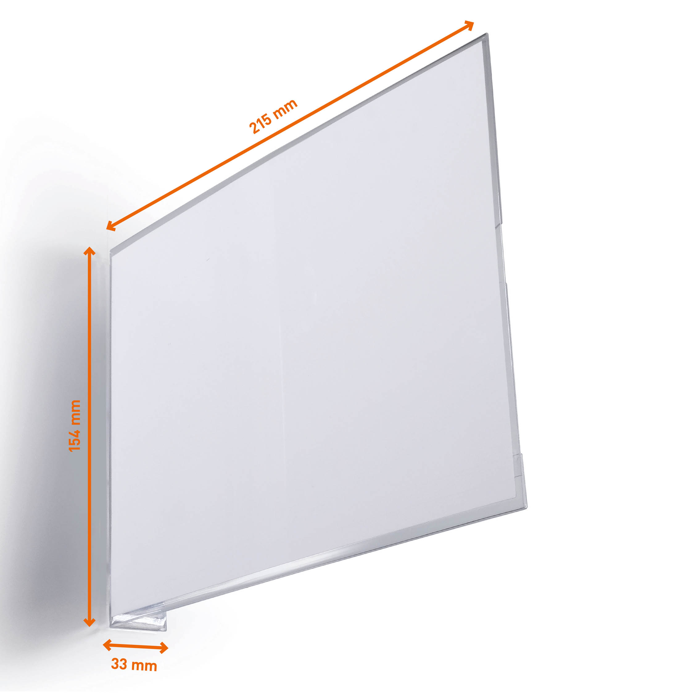 Tydliga och väl synliga gångskyltar för märkning av pallgångar, hyllsektioner, lagerkontor, toaletter m.m gör det överskådligt och lätt att hitta på ett lager eller i en produktionsanläggning. Denna stadiga skylt av PET plast skyddar inlagan mot damm. Inlagan kan göras med hjälp av mallar som finns i gratisverktyget Duraprint, och är lätt att byta ut tack vare ett utskuret tumgrepp på baksidan. Skylten är rätvinkligt, vilket gör den väl synlig från båda håll. Sätts enkelt upp - utan verktyg - med permanenthäftande klisterremsa (3 cm bred), som kan tas bort utan att lämna rester om skylten ska tas ner. För inlagor i A5 liggande format (210x148,5 mm). Yttermått: 215x152x33 (BxHxD)