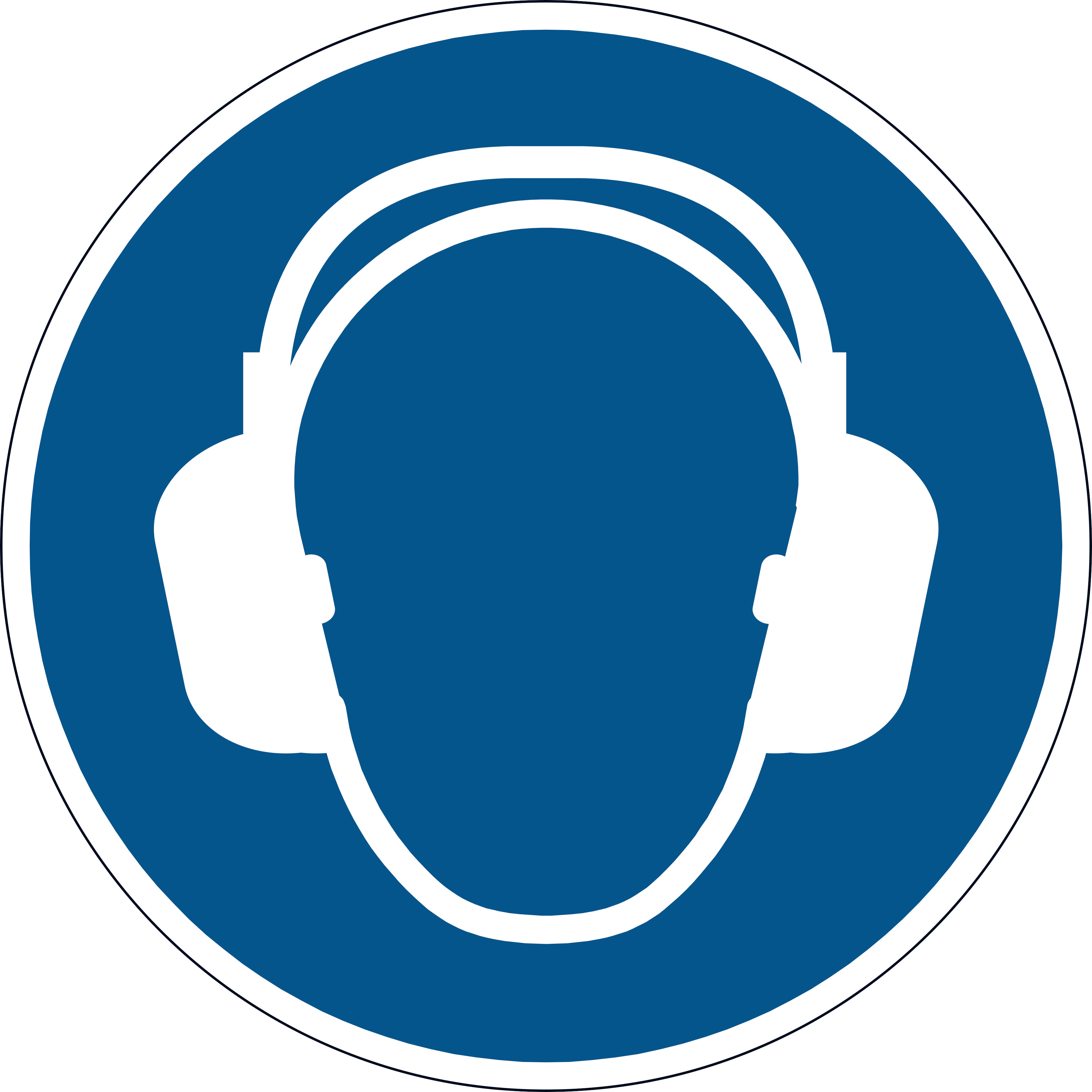 Självhäftande påbudsskylt för golvapplicering. Informerar tydligt om att skydda hörseln och bidrar till ökad säkerhet och riskmedvetenhet.