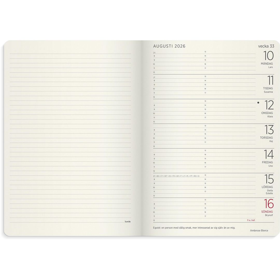 Varumärke Burde EAN 7333453596060 Typ Veckokalendrar Kategori Almanackor & Kalendrar Färg Brun Format A5 Blad 88 Omslagsmaterial Konstläder, Inbunden Sidor 176 -