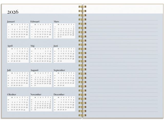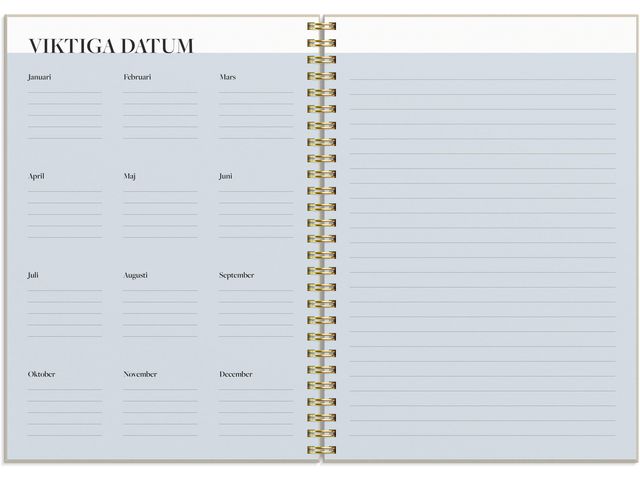 ● Innehåll: Flaggdagar, Helgdagar/aftnar, Månfaser, Namnsdagar, Anteckningssidor, Temadagar/händelser, Årsöversikt/årsöversikter, Årsplan/årsplaner