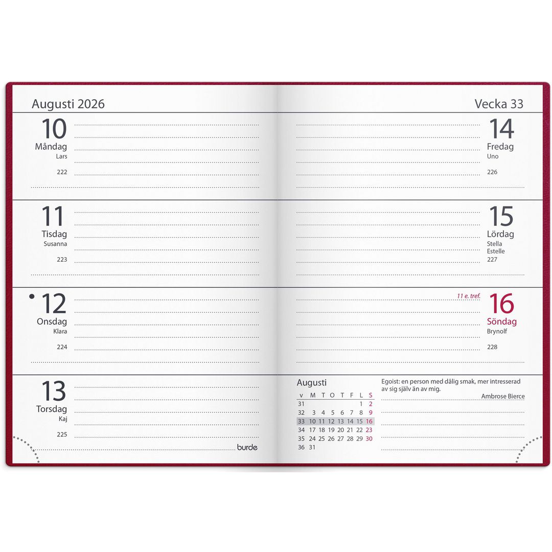 Burde Fickdagboken Lilla Konstläder Röd 2026