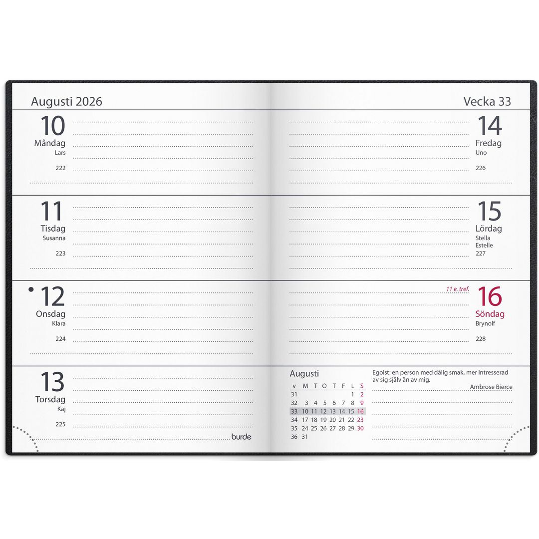 Burde Fickdagboken Lilla Konstläder Svart 2026