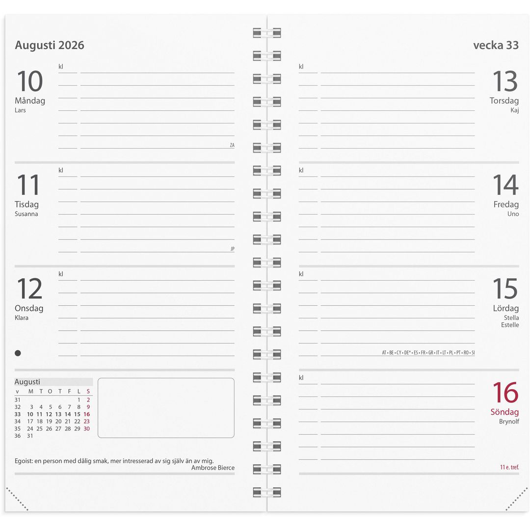 Varumärke Burde EAN 7333453366069 Typ Fickkalendrar Kategori Almanackor & Kalendrar Färg Svart Bredd 8.3 cm Längd 15.8 cm Blad 64 Omslagsmaterial Kartong, Spiralbunden Sidor 128 -