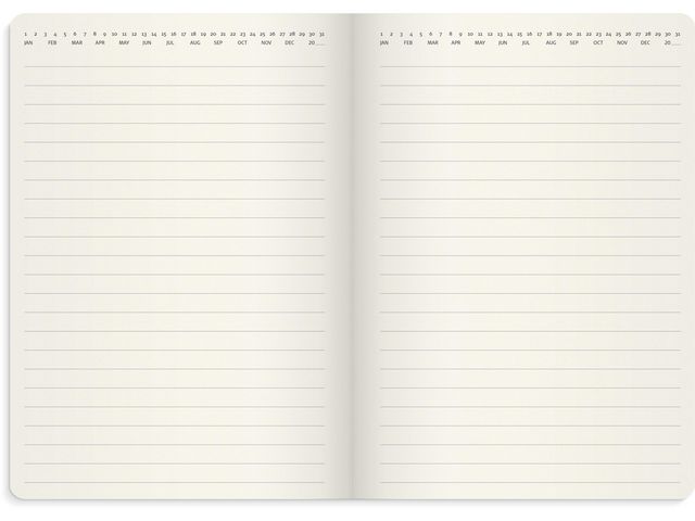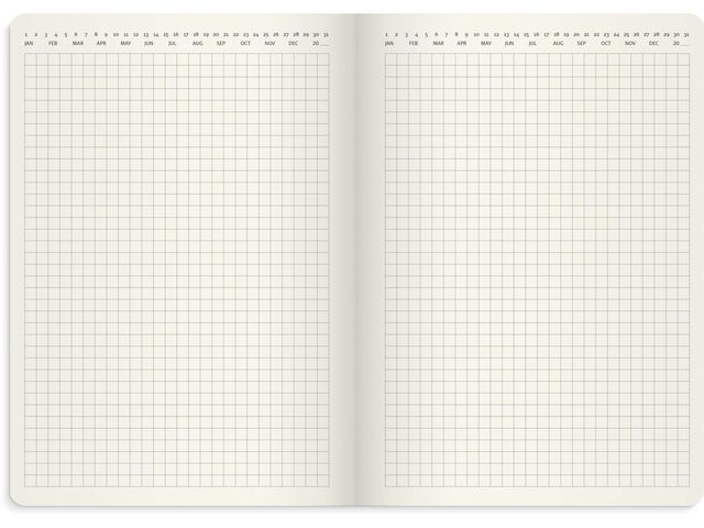 En stilren, exklusiv inbunden kalender med cremefärgat papper. Den ligger plant på bordsytan när du skriver tack vare bindningstekniken som tillåter kalendern att öppnas upp helt vid användning. Kalendern har en vecka per uppslag, en stående layout med timindelning 06-18, samt anteckningsyta längst ner på uppslaget för kom-ihåg eller reflektioner. Innehåller en lättöverskådlig årsplanering samt 64 sidor för anteckningar.