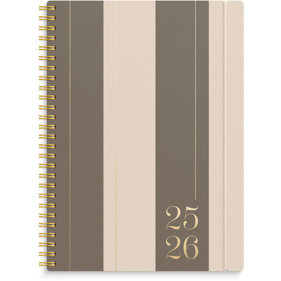 Study A5 är en praktisk kalender för den studerande. Med en stående layout samt timindelning 8-17 hjälper 'Study' dig att behålla strukturen genom hela läsåret. Det finns även utrymme för att skriva upp årsplaner, scheman och provresultat för att lättare kunna reflektera över akademisk utveckling. För att underlätta organiseringen har Study även en praktisk förvaringsficka. Allt du behöver för ett framgångsrikt läsår! Story Rand är ett omslag som genom geometriska gyllene linjer och färgspel i mörkrost och kaffe med mjölk får ett större djup i sin presentation. Med guldpräglingen blir det en väldesignad kalender med det lilla extra.