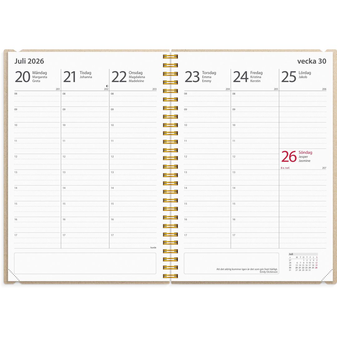 ● Layout: Stående, vecka/uppslag, timindelning 8-17