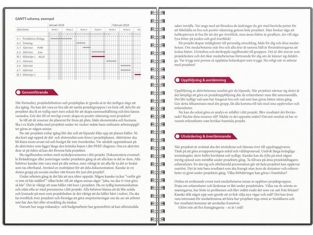 Alla projektledares hjälpreda. I denna kalender får du hjälp med verktyg och uppföljning för att ta en idé från start till mål. Här finns en översiktlig beskrivning av projektets faser, tips till dig som projektledare och uppföljning av projektledning och resultat.