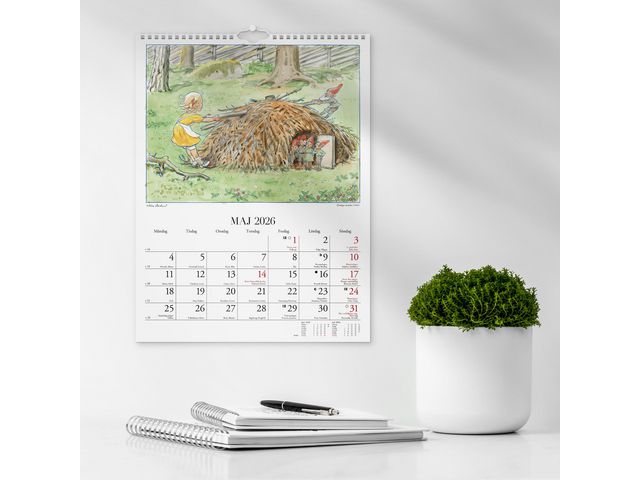 Väggkalender med bilder från välkända barnböcker av Elsa Beskow.