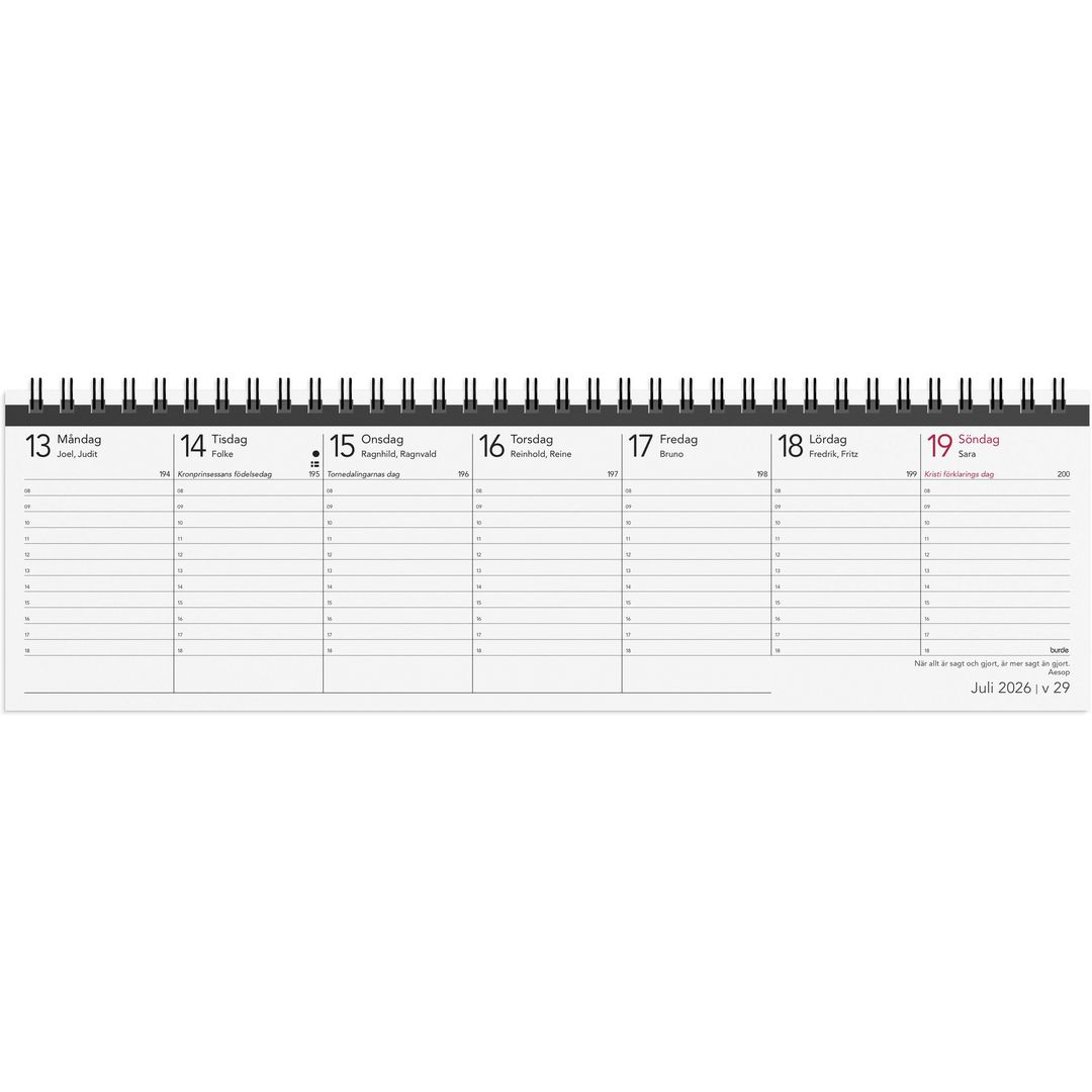 Varumärke Burde EAN 7333453148269 Typ Bordskalendrar Kategori Almanackor & Kalendrar Färg Svart Bredd 30.5 cm Längd 9.5 cm Blad 56 Omslagsmaterial Kartong, Spiralbunden Sidor 112 -