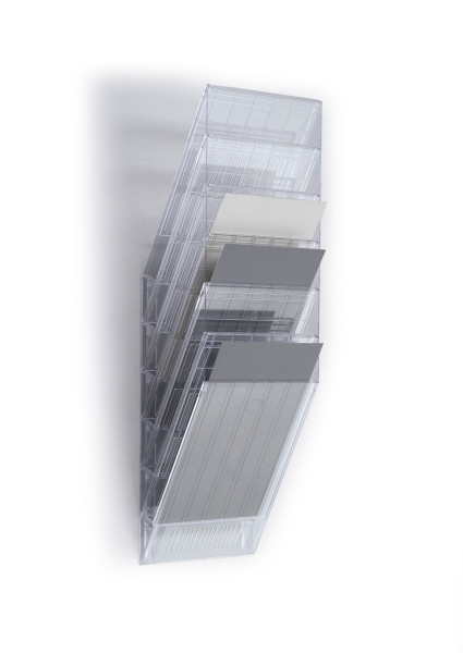 Montera denna Durable Flexiboxx väggdisplay på en vägg för snabb organisering av dokument, tidskrifter eller andra A4-papper.