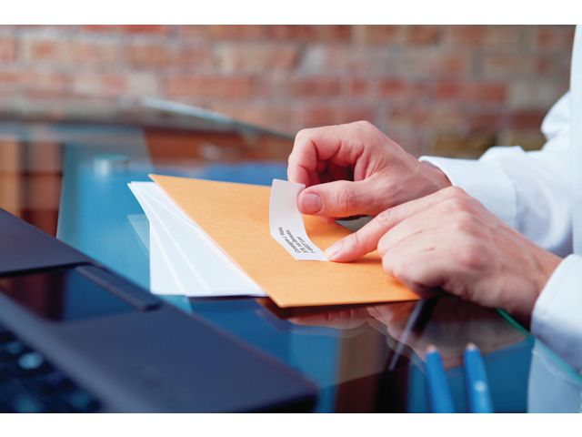 Dymo LabelWriter℃ adressetiketter i standardutförande har en icke-permanent självhäftande baksida som enkelt kan avlägsnas från underlaget.