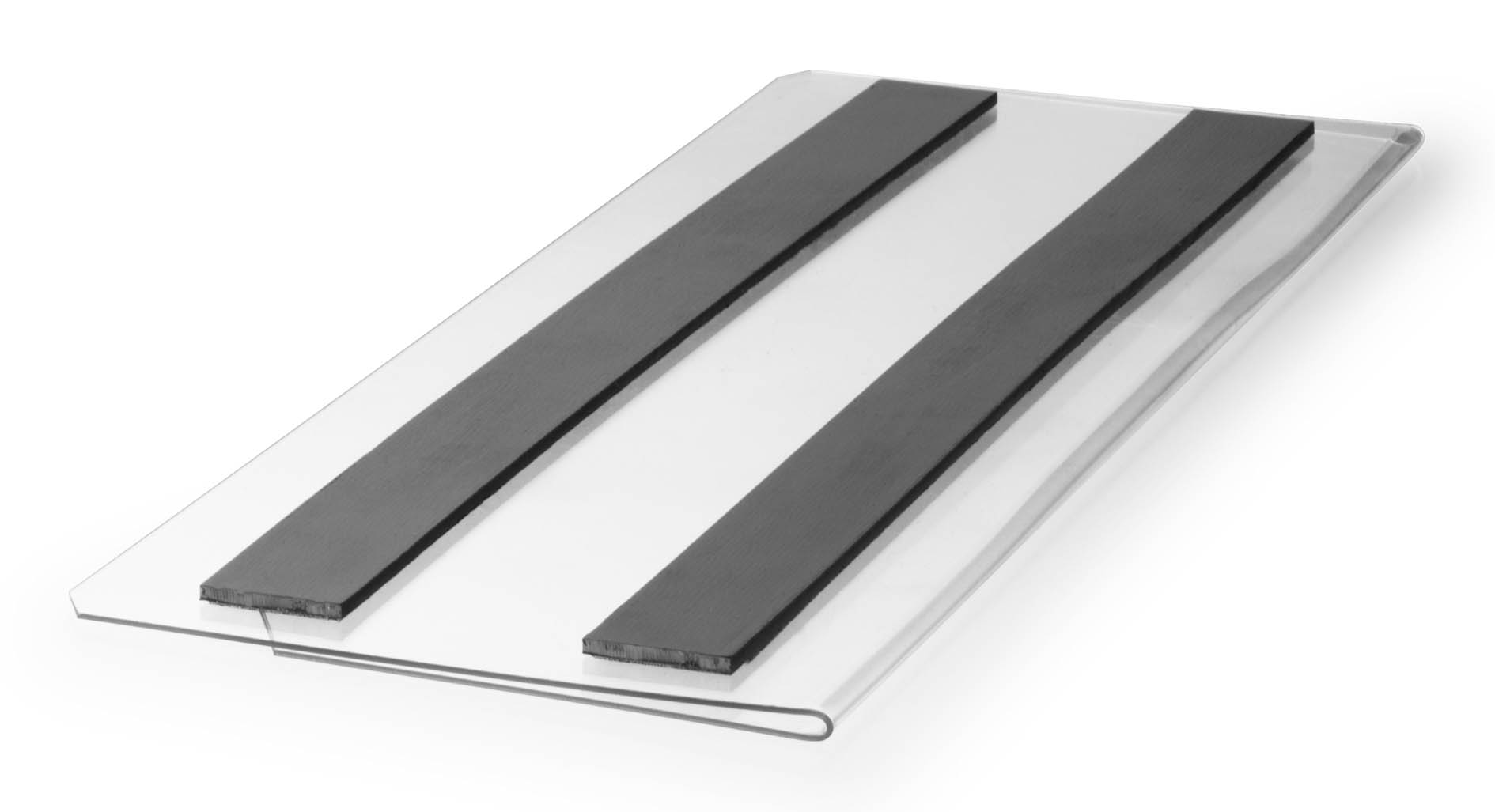 Etiketthållare i PET plast med två magnetremsor på baksidan. För användning på t ex hyllkanter av metall.