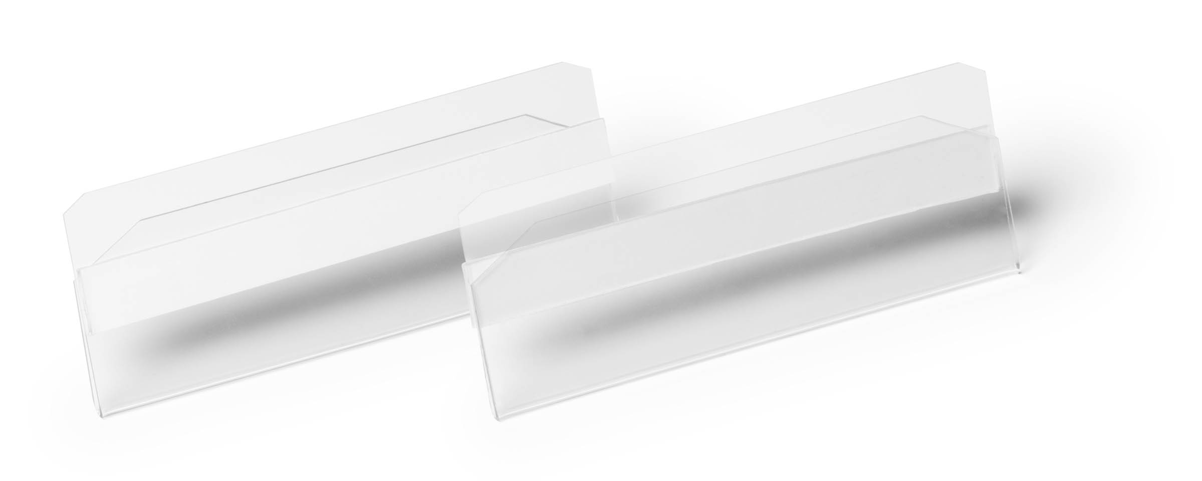 Tydlig och översiktlig märkning av hyllor, skåp , dörrar, pallar, containrar och andra utrymmen förbättrar och effektiviserar arbetsprocessen på lager och i produktionsanläggningar. De transparenta, självhäftande etiketthållarna av styv PET plast går att läsa med skanner. Etiketterna är lätta att byta eftersom hållarna är öppna upptill och på båda sidorna och dessutom med avfasade hörn för att lätt få tag i etiketten. Sätts upp med klisterremsor som är borttagbara utan att lämnar limrester vid borttagning. Gratis mall för etiketten finns på www.duraprint.se.