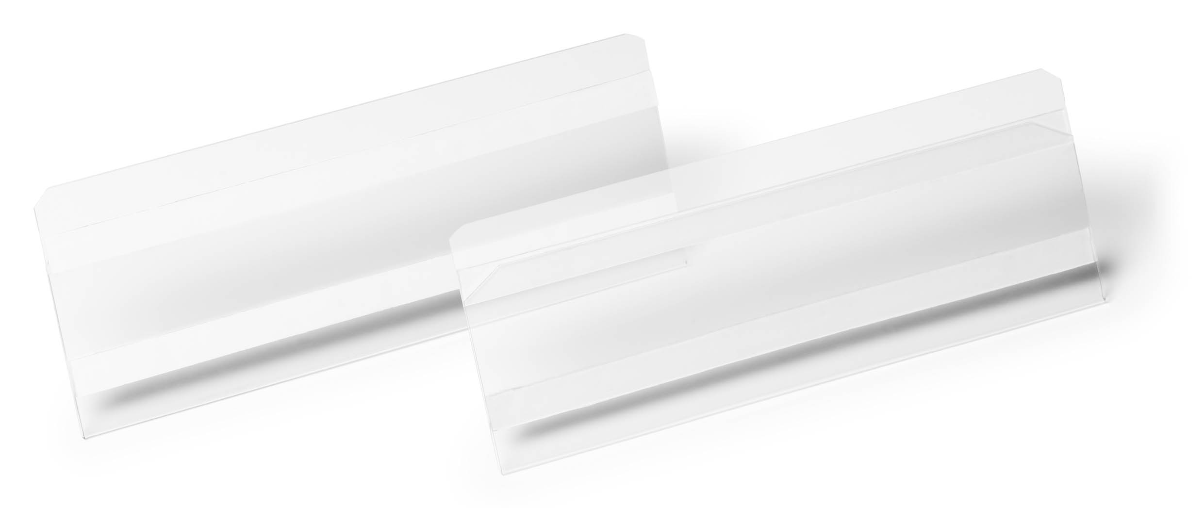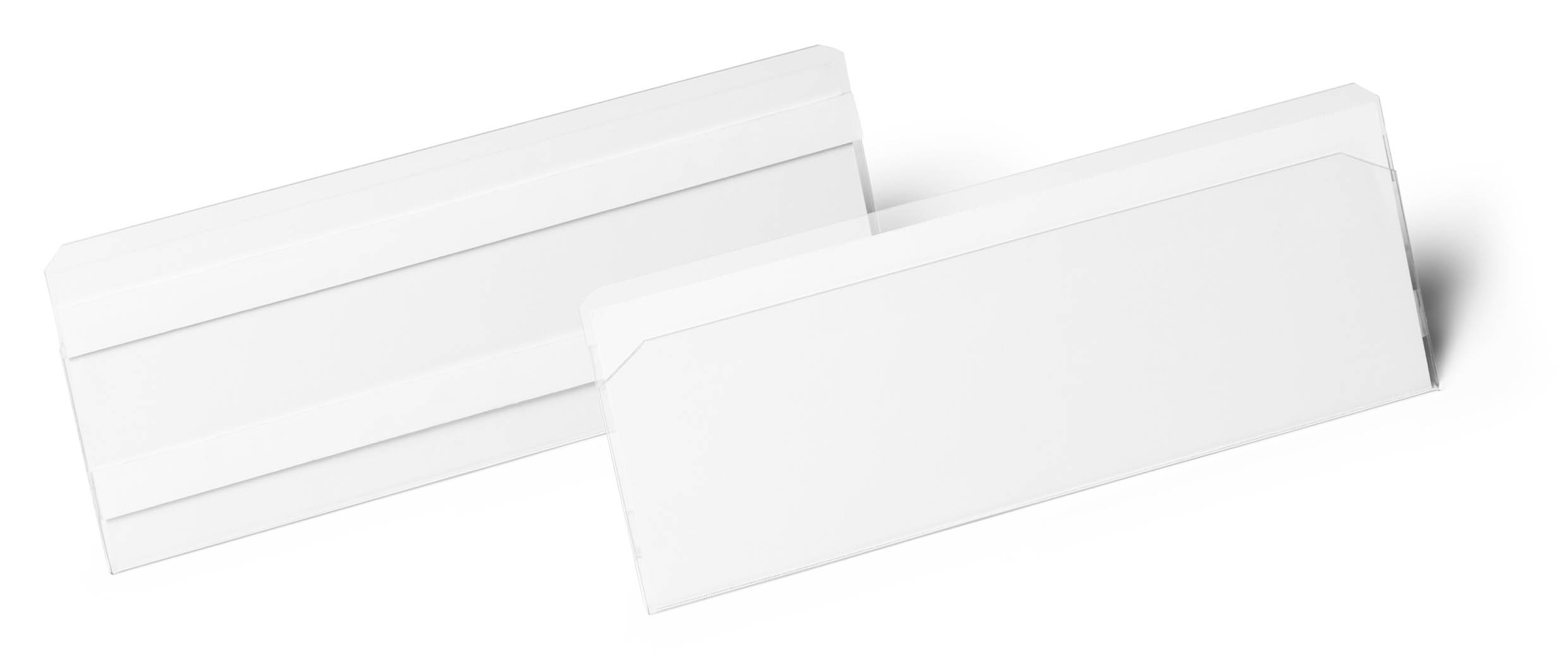 Tydlig och översiktlig märkning av hyllor, skåp , dörrar, pallar, containrar och andra utrymmen förbättrar och effektiviserar arbetsprocessen på lager och i produktionsanläggningar. De transparenta, självhäftande etiketthållarna av styv PET plast går att läsa med skanner. Etiketterna är lätta att byta eftersom hållarna är öppna upptill och på båda sidorna och dessutom med avfasade hörn för att lätt få tag i etiketten. Sätts upp med klisterremsor som är borttagbara utan att lämnar limrester vid borttagning. Gratis mall för etiketten finns på www.duraprint.se.