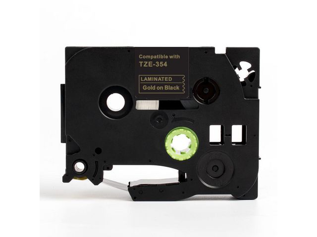 Tape 24mm TZe-354 Guld på Svart. TZ-tejper tål kraftig nötning och långvarig exponering för elementen