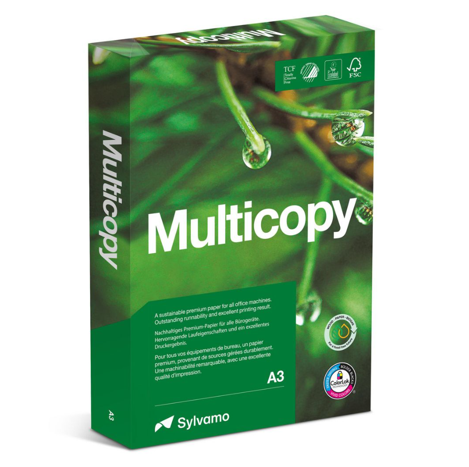 Multicopy är inte bara miljövänligt utan det bockar av alla rutor som krävs för ett kontorspapper. Ett hållbart, premiumpapper för alla dina kontorsmaskiner och det enda papper som en arbetsplats behöver. Enkelt inköp, enkel användning, nöjda kunder och nöjda kollegor. Multicopy har ColorLok-teknik som ger utskrifter som är skarpa, tydliga och fria från fläckar och fläckar. Multicopy-familjen av miljövänliga papper inkluderar Multicopy, premiumpapper för alla kontorsmaskiner, Multicopy Presentation för lysande, skarpa och klara färgutskrifter och Multicopy Zero, ett koldioxidneutralt kopieringspapper certifierat av Natural Capital Partners.