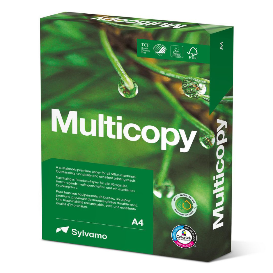 Multicopy är inte bara miljövänligt utan det bockar av alla rutor som krävs för ett kontorspapper. Ett hållbart, premiumpapper för alla dina kontorsmaskiner och det enda papper som en arbetsplats behöver. Enkelt inköp, enkel användning, nöjda kunder och nöjda kollegor. Multicopy har ColorLok-teknik som ger utskrifter som är skarpa, tydliga och fria från fläckar och fläckar. Multicopy-familjen av miljövänliga papper inkluderar Multicopy, premiumpapper för alla kontorsmaskiner, Multicopy Presentation för lysande, skarpa och klara färgutskrifter och Multicopy Zero, ett koldioxidneutralt kopieringspapper certifierat av Natural Capital Partners.