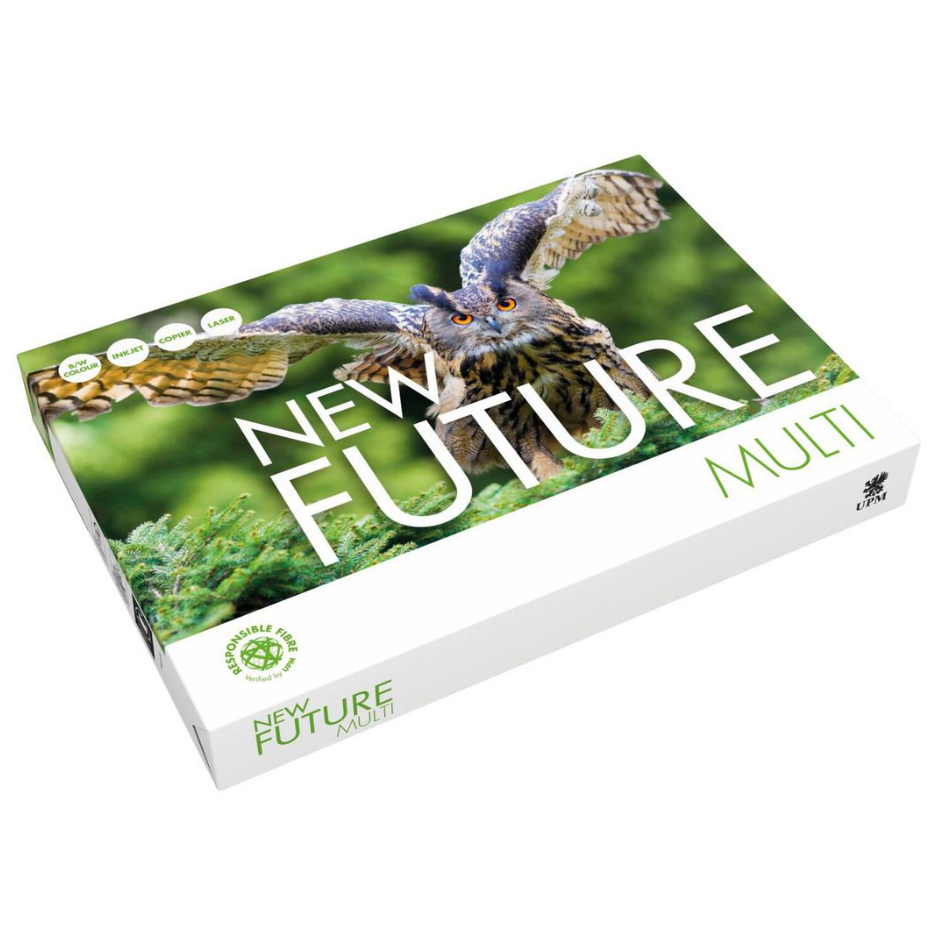UPM New Future Multi är ett högvitt papper som lämpar sig för många arbetsuppgifter, inklusive dagliga kontorsutskrifter, kopiering, dubbelsidiga utskrifter samt fax. Det är ett kvalitetspapper med pålitlig och jämn allround-prestanda.