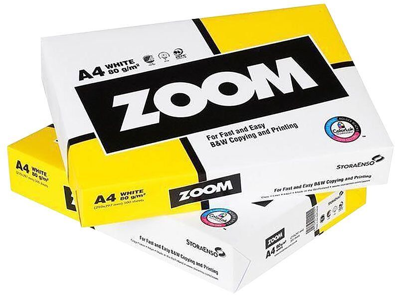 Zoom är ett varumärke skrivar- och kopieringspapper som fungerar bekymmersfritt och är kostnadseffektivt. Tryckresultatet blir utmärkt både i volymkopiatorer och laserskrivare.