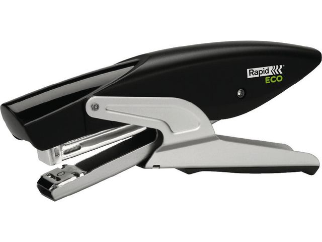 Stark, stabil och miljövänlig! Häfttång tillverkad av 80% återvunnen plast. Häfttången kan tas isär, så att delarna kan sorteras miljövänligt. Kapacitet: Upp till 20 ark och klarar häftklamrar 24/6 och 26/6. - Häftar upp till 10 pappersark (80 g) - Lätt att ta med - Använd 24/6 eller 26/6 Rapid Standard häftklamrar - 55 mm insättningsdjup