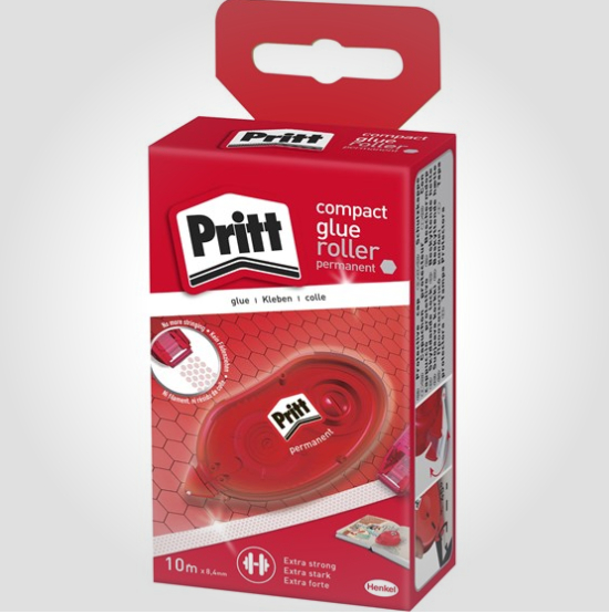 Den nya och förbättrade permanenta limrullen Pritts Compact har ett starkt, hållbart lim i vaxkakemönster.