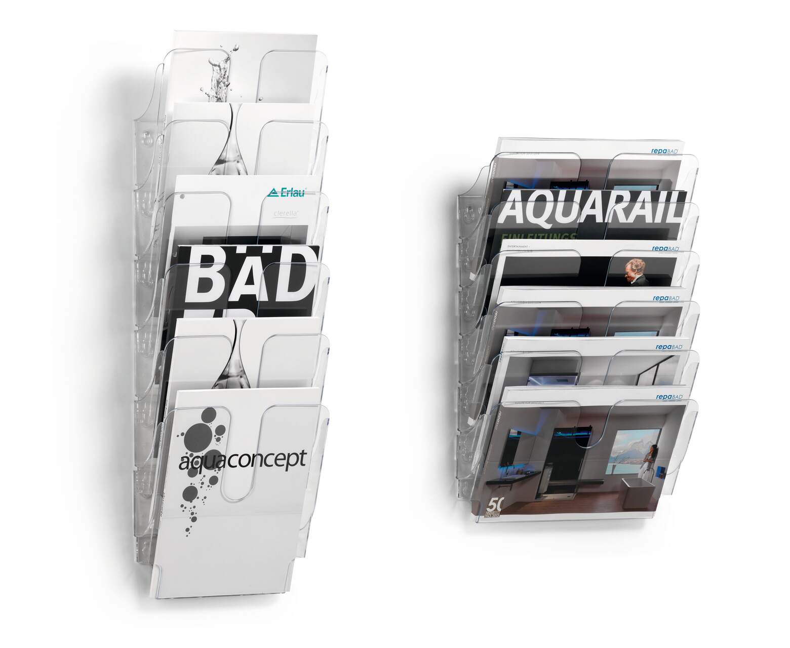 Komplett set med 6 st broschyrfack FLEXIPLUS A4 i liggande format.