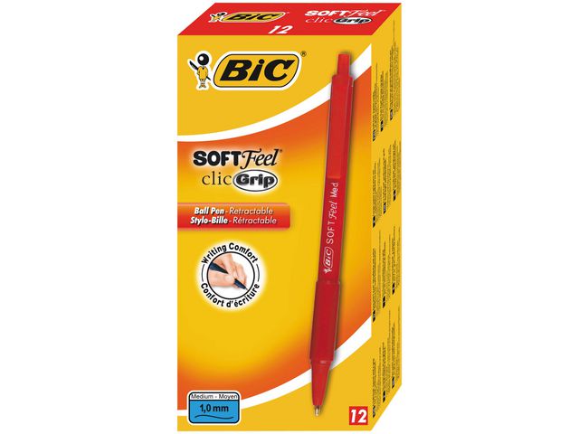 BIC® SoftFeel® Clic Grip har ett bekvämt mjukt grepp som gör det bekvämt att skriva. BIC® SoftFeel® Clic Grip passar utmärkt för dagligt skrivande. Med det bekväma mjuka gummigreppet blir du stadig på handen och kan skriva utan att pennan glider ur händerna, och med pennans EasyGlide-bläck blir skriften tydlig och jämn. Pennans mediumspets ger jämna linjer, så att dina föreläsnings- eller mötesanteckningar blir klara och tydliga. Fickklämman på pennhuven är praktisk. Du kan ha pennan på dig hela tiden genom att fästa den på bland annat skjortficka, anteckningsblock och mappar. - Klickemkanism