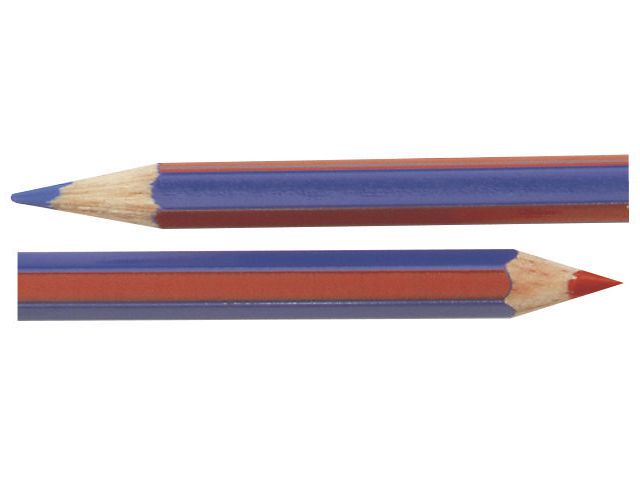 Pennan kan användas för att rita, färglägga, skissa och märka, och har två stiftfärger: röd och blå.