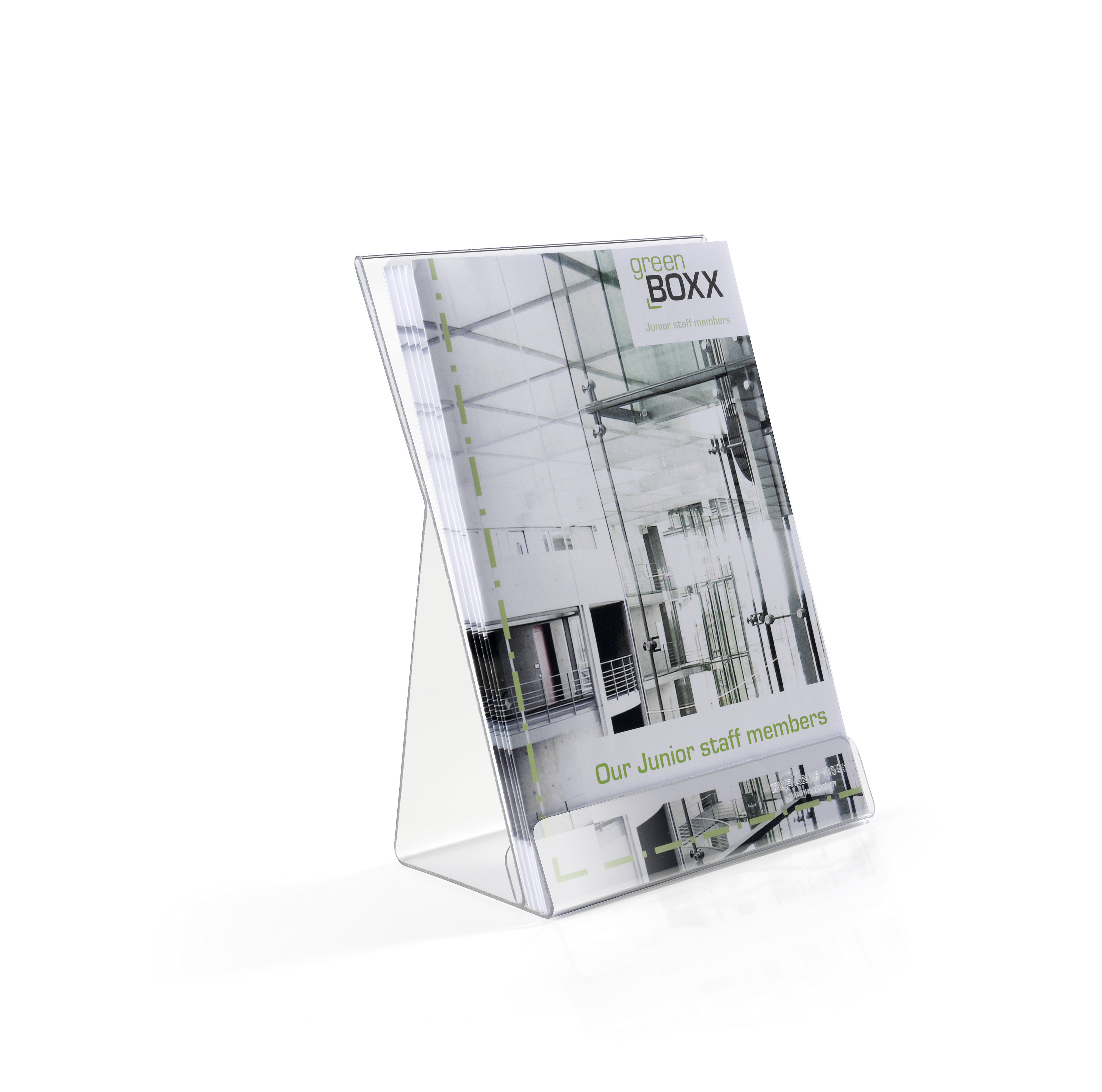 ● Tillverkad av PET (polyetentereftalat)Broschyrställ Bord A5 Stående