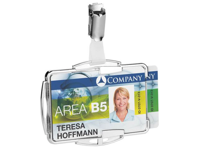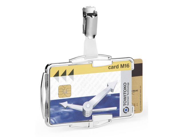 Varumärke Durable EAN 4005546981932 Typ Korthållare med Roterbart Clip Kategori Kontorsmaterial Material ABS, Stål, Polyeten, Polypropylen Färg Silver Antal st/fp 10 Bruttovikt 0.236 kg Kapacitet 2 kort Monterad Hålning Utförande Stående, Liggande Innermått 87x54 mm Bredd 54 mm Längd 87 mm - Produktblad