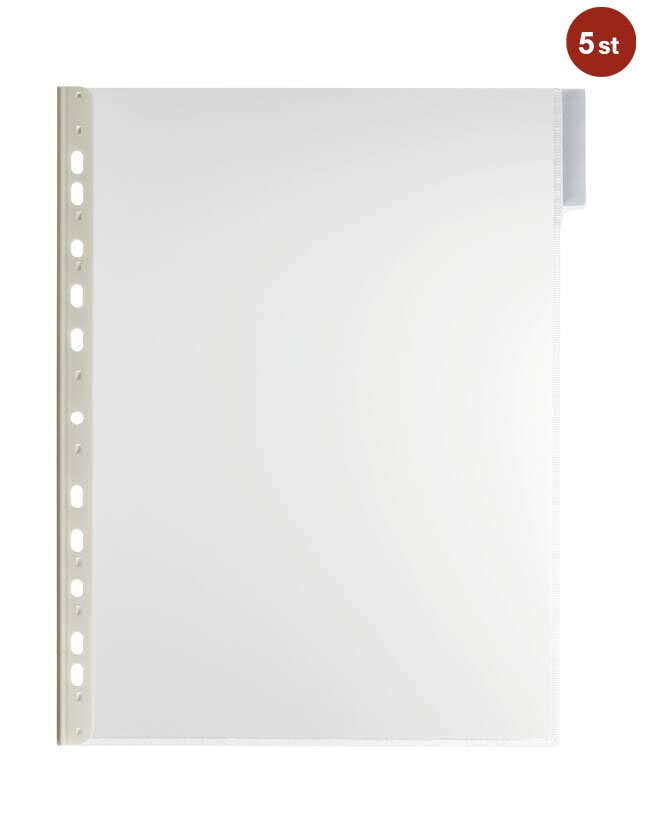 Slitstark, skanningsbar panel för dokument i A4 format med färgad ytterkant och fasta rubrikhållare i olika färger. För användning i översiktssystem med piggar integrerade i hållaren. Öppning i ovankant för byte av dokument. Universalhålad för att även passa i pärmar. Minsta köp är en förpackning med 5 paneler.Visa mer beskrivningVisa mindre beskrivning -